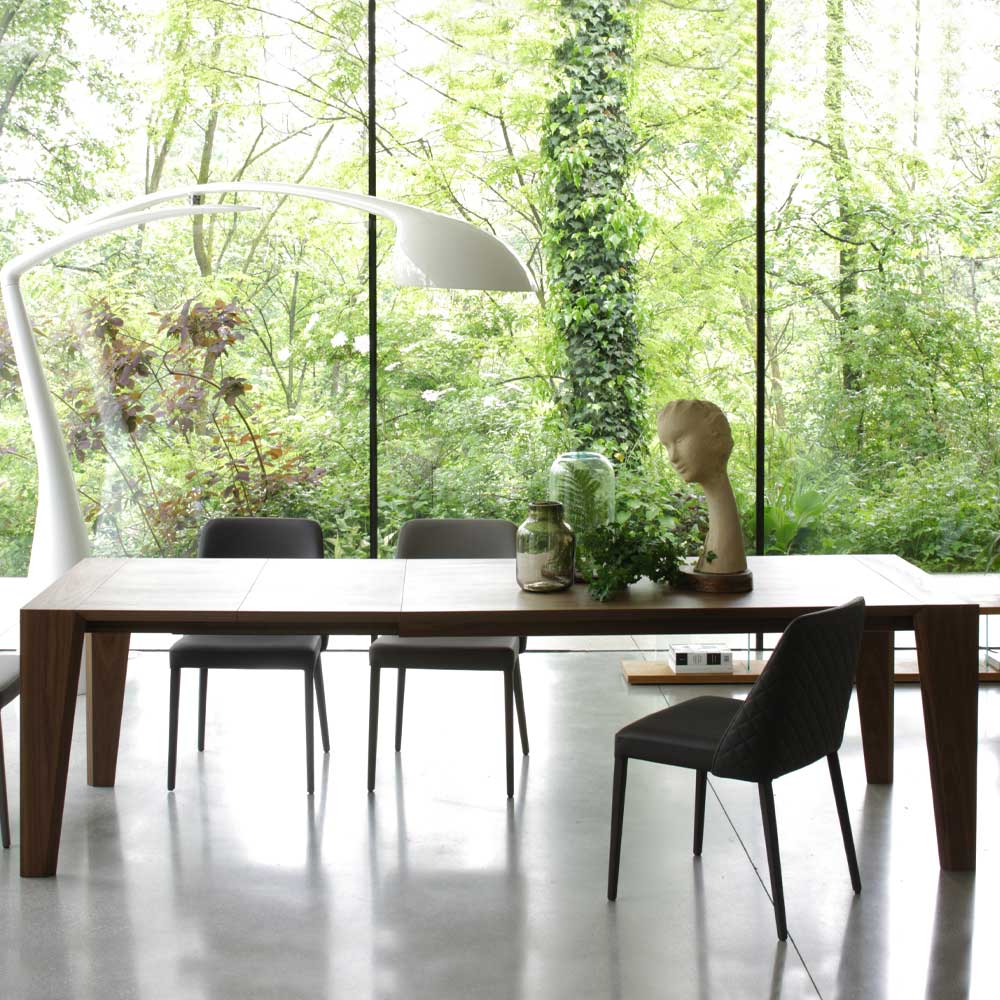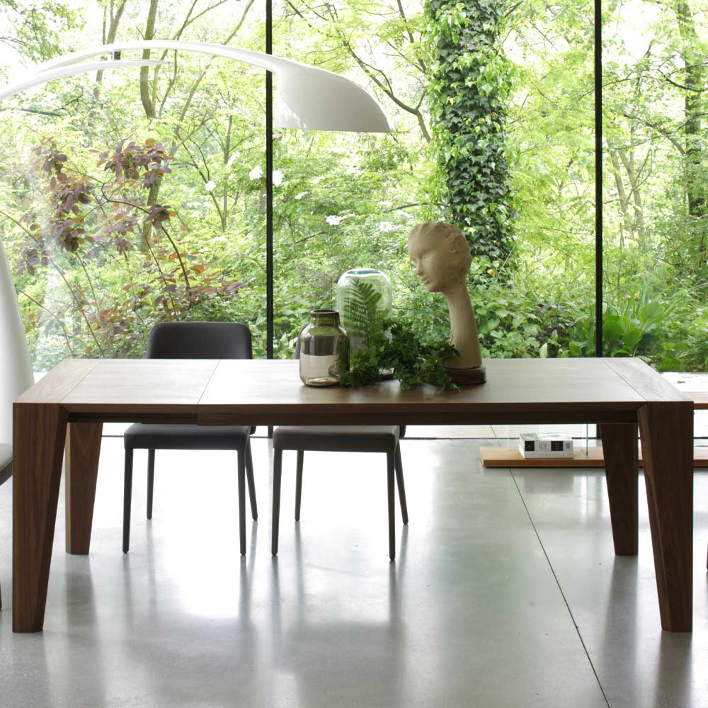 lavet i Italien. Bordet udtrykker naturens essens gennem sine Canaletto-valnøddefinishkorn, der findes både på toppen og på benene. Dette imponerende og raffinerede møbel byder på alsidighed med sin udtræksfunktion, så du kan vælge mellem en version med en eller to forlængere. Glidemekanismen, der er synlig selv når bordet er forlænget, bevarer et sammenhængende design, der blander æstetik og funktionalitet. Det er mere end bare et spisebord, det er et kunstværk, der fejrer naturens skønhed i dit rum.