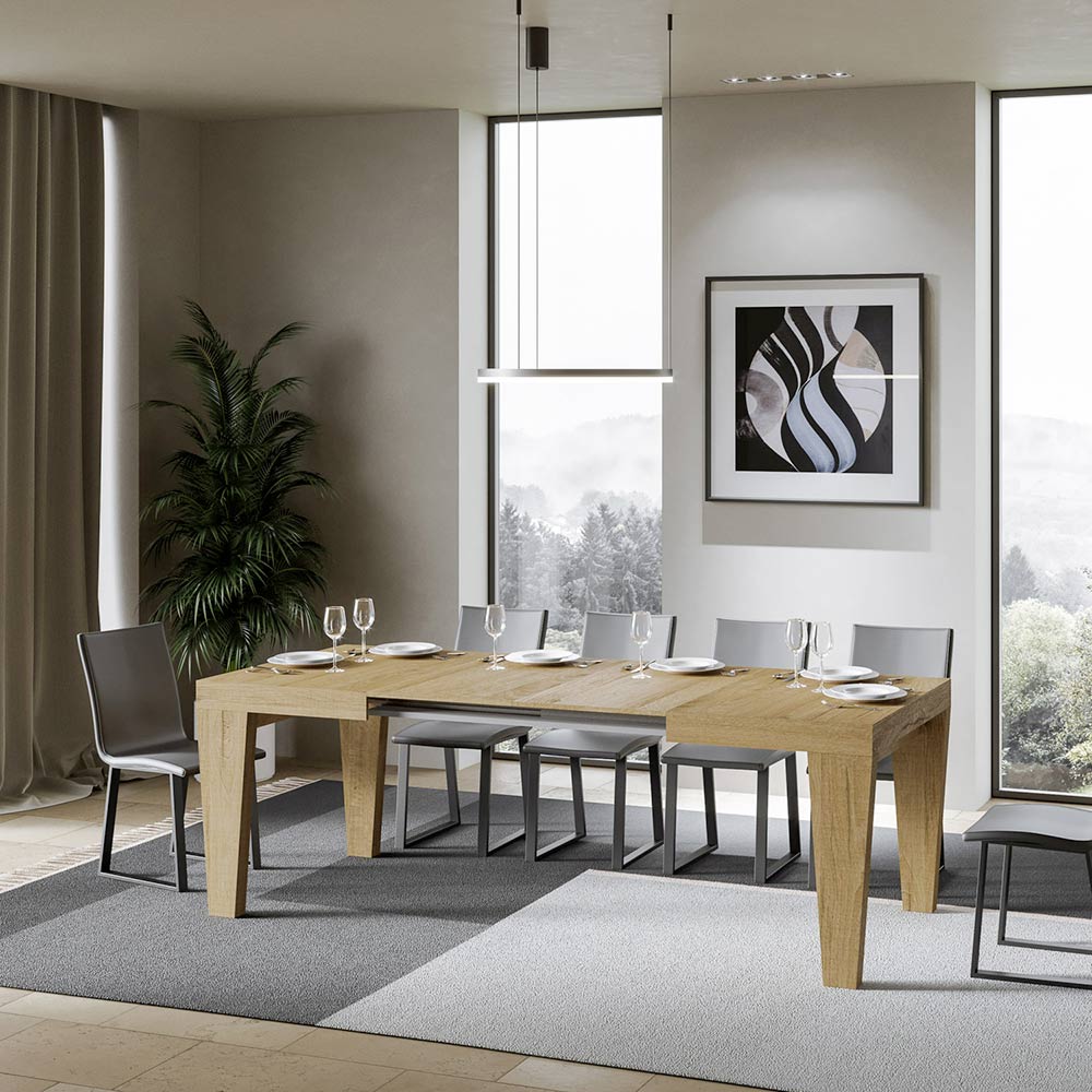 Spisebord udtrækkeligt fremstillet afmikropartikler af træ, helt fremstillet i Italien.
