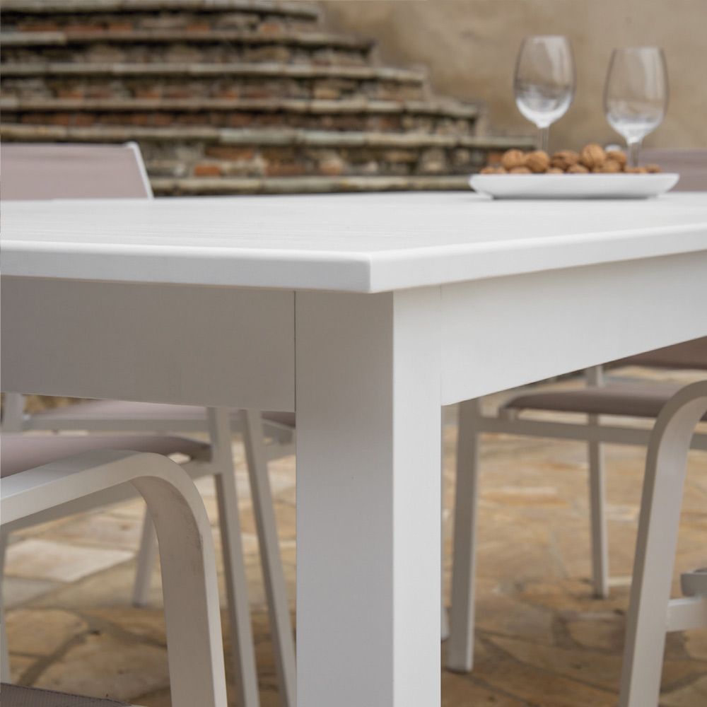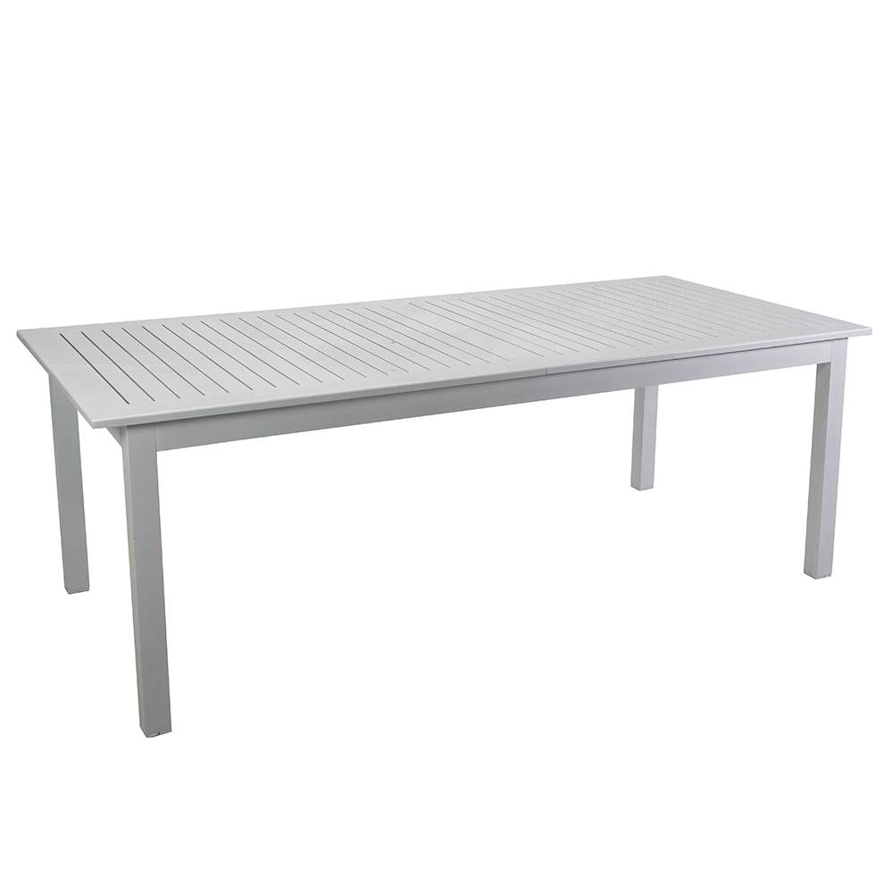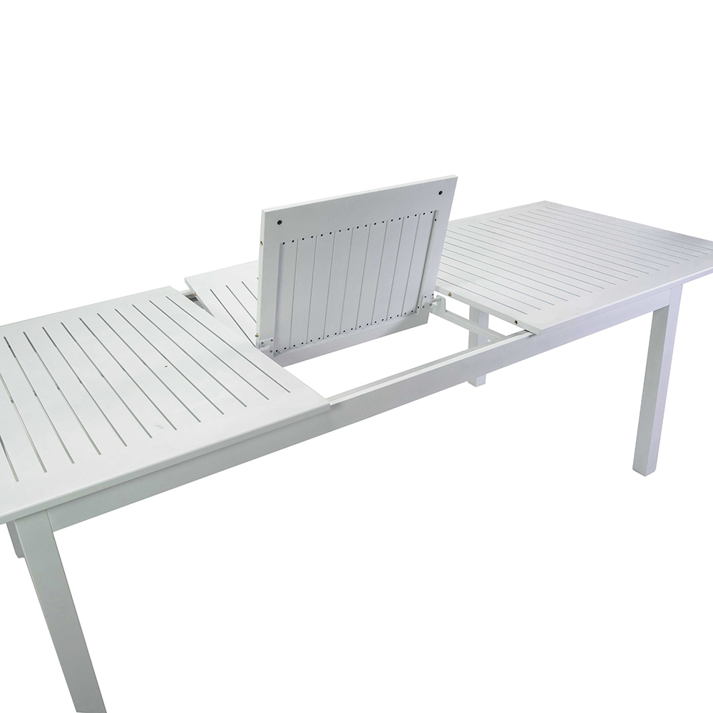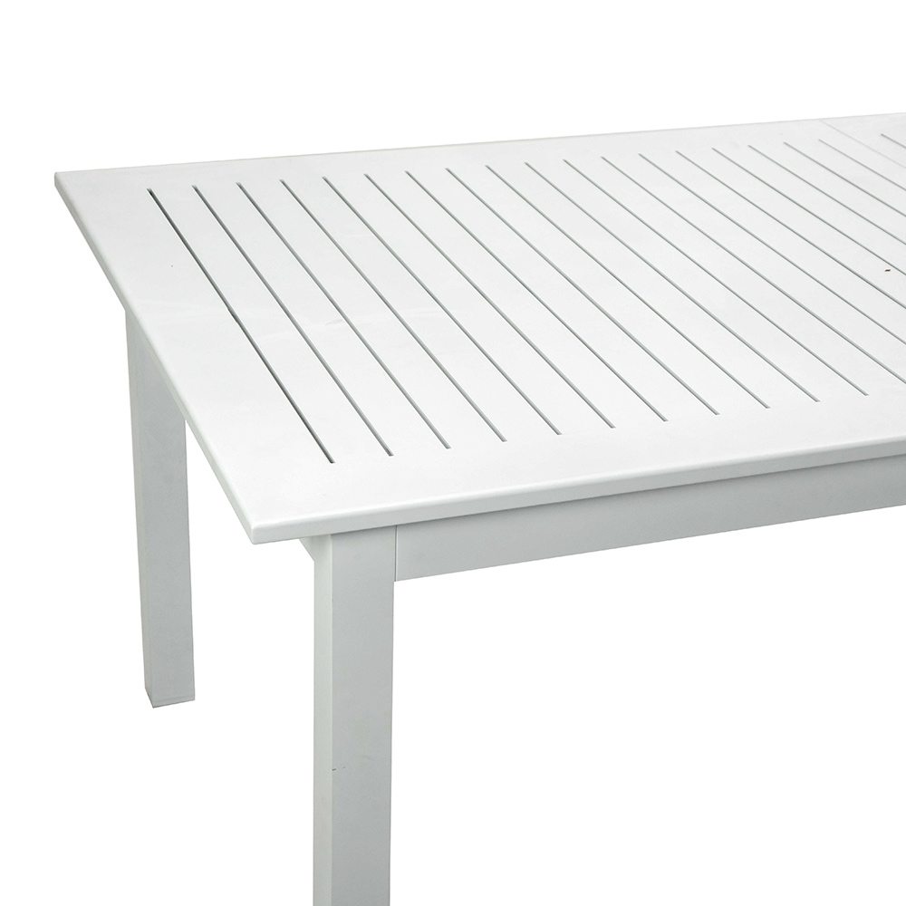 Dette udtrækkelige aluminium bord er den perfekte løsning til at være vært for både små familiesammenkomster og store udendørs festligheder. Dets aluminiumsramme sikrer holdbarhed og stabilitet og modstår ubesværet elementerne. Med et slankt og rent design passer det perfekt ind i ethvert udendørs miljø, fra en moderne terrasse til en mere klassisk have.