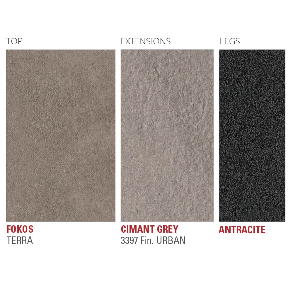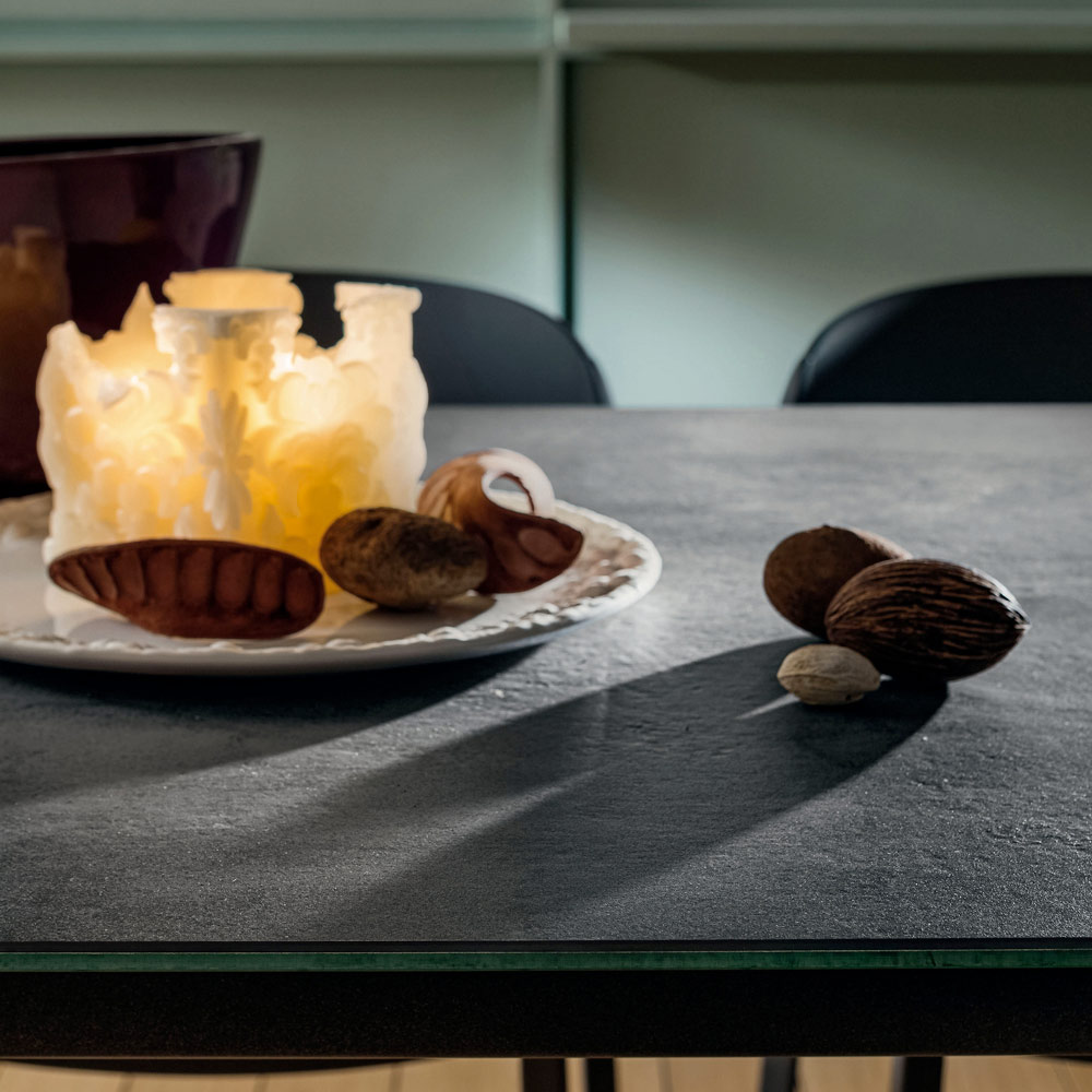 aluminium i antracitfinish. Dens særegenhed er repræsenteret af laminam toppen, en