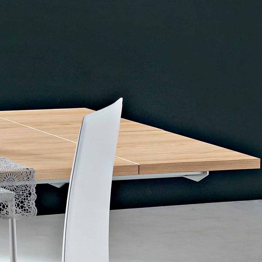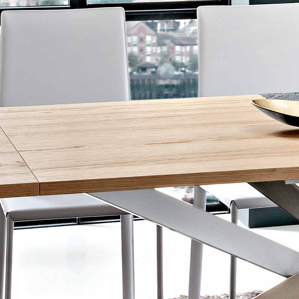 Udtrækkeligt køkkenbord med egefineret plade og metalben Made in Italy.