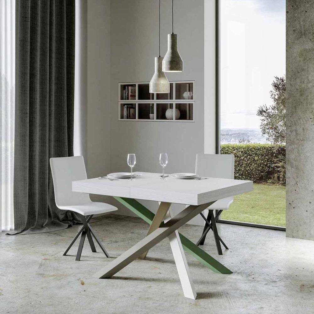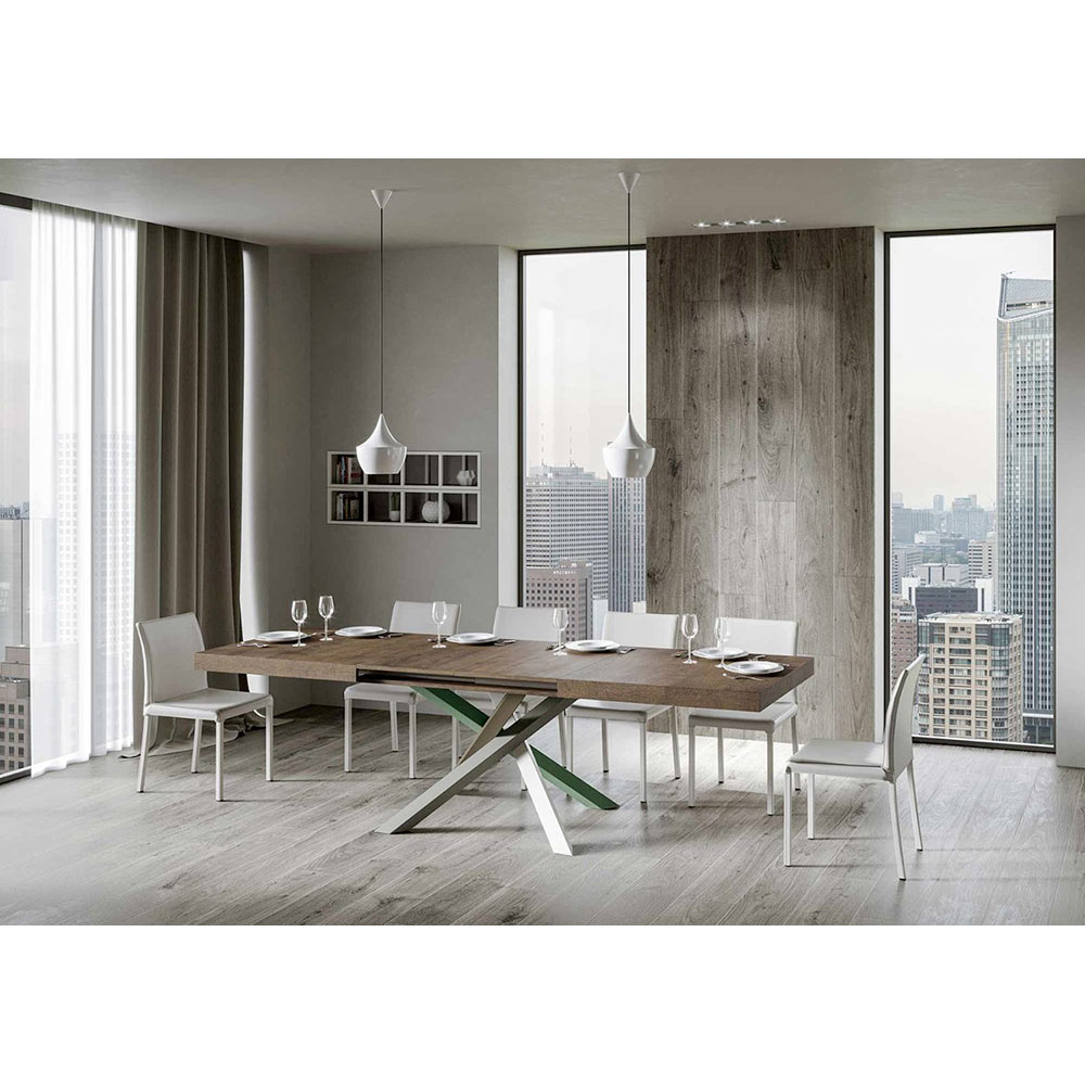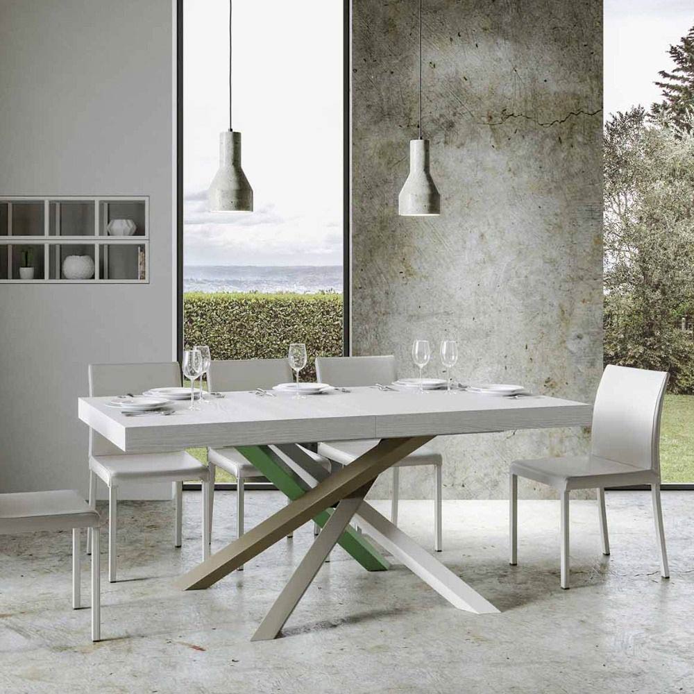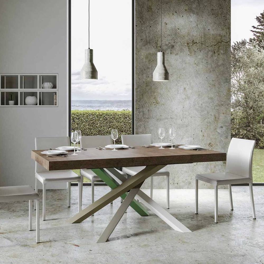 Opdag det udtrækkelige bord, et mesterværk i moderne design, der skiller sig ud med sin unikke silhuet og mångsidige funktionalitet. Træpladen fremhæver rummets lysstyrke og tilbyder en glat og robust overflade, der indbyder til daglig brug. Bordfoden er et ægte geometrisk syn med krydsede ben, der fletter sig sammen i et farvespil. Den foreslåede kombination er: Ben 1: Ren hvid (RAL 9010). Ben 2: Mosgrå (RAL 7003). Ben 3: Olivengrå (RAL 7002). Ben 4: Reseda-grøn (RAL 6011). RAL-farverne er dækkende. Denne kombination tilføjer ikke kun et strejf af vitalitet til designet, men sikrer også stabilitet og styrke. Bordets udtræksmekanisme er lige så enkel som den er teknisk, så dette elegante møbel kan forvandles fra et praktisk bord til fire personer til et hyggeligt område til middage og større forsamlinger.
