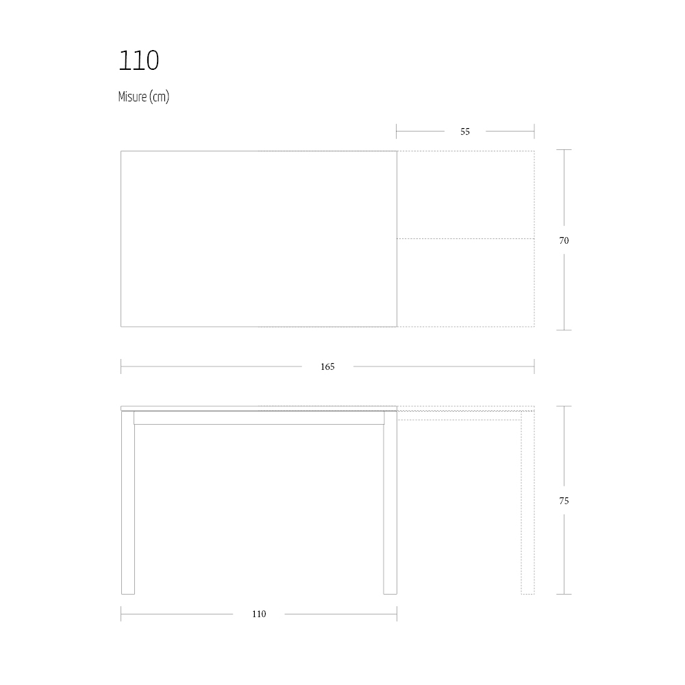 Tilgængelige størrelser:- L 110(165) XP 70 H 75 cm - strækker sig fra 55 cm;