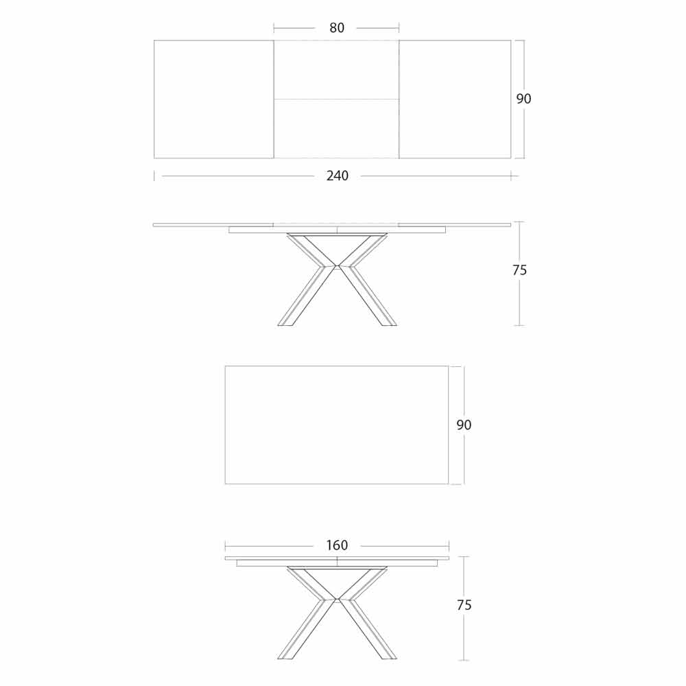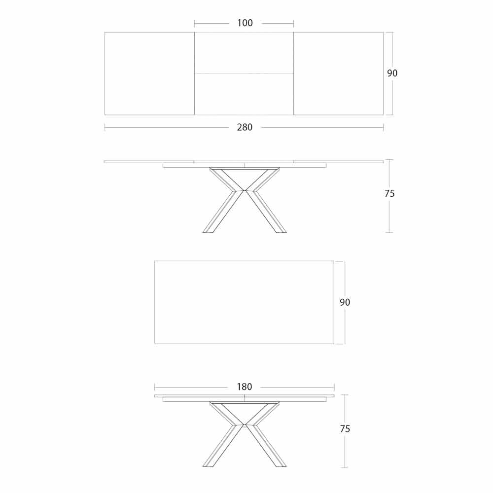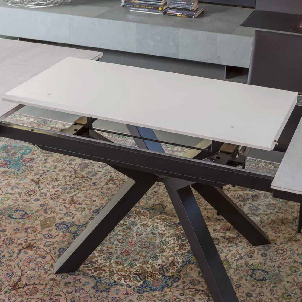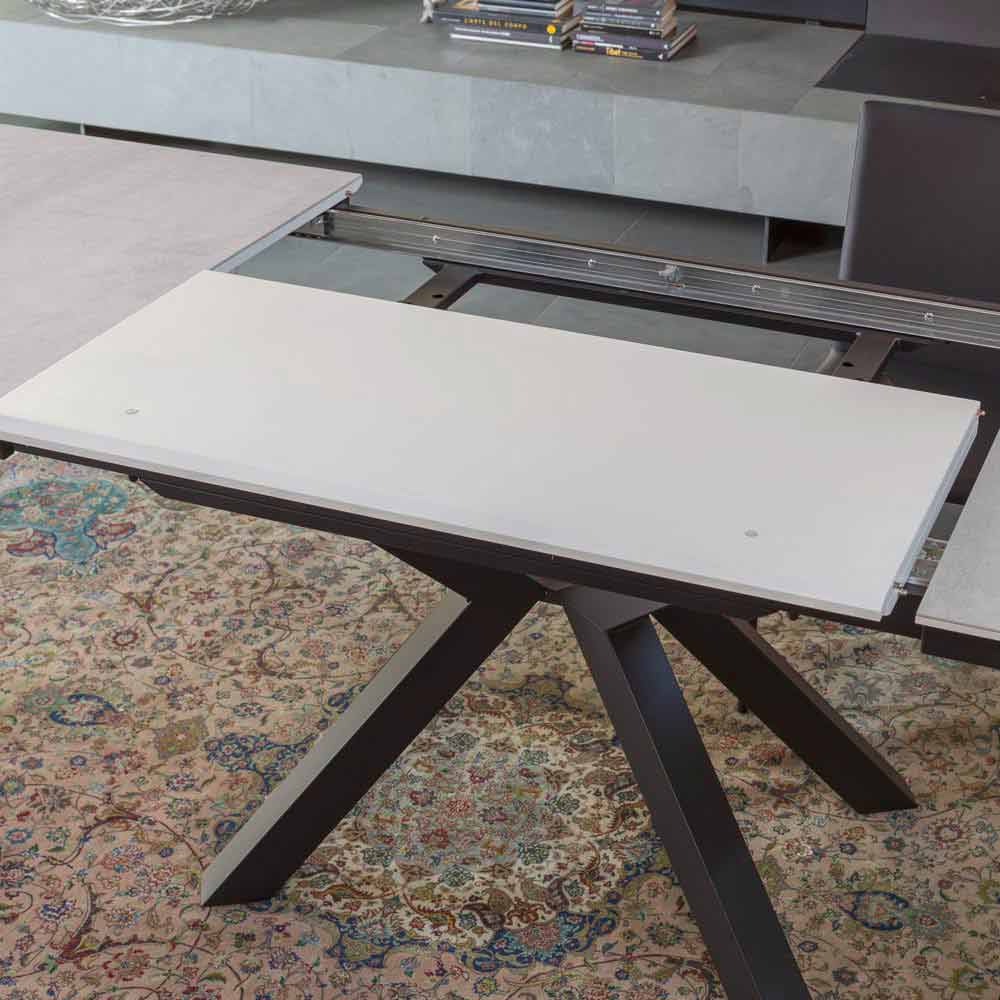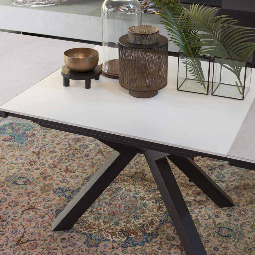 Spisebord kan udvides til 280 cm med laminam keramikplade lavet i Italien.