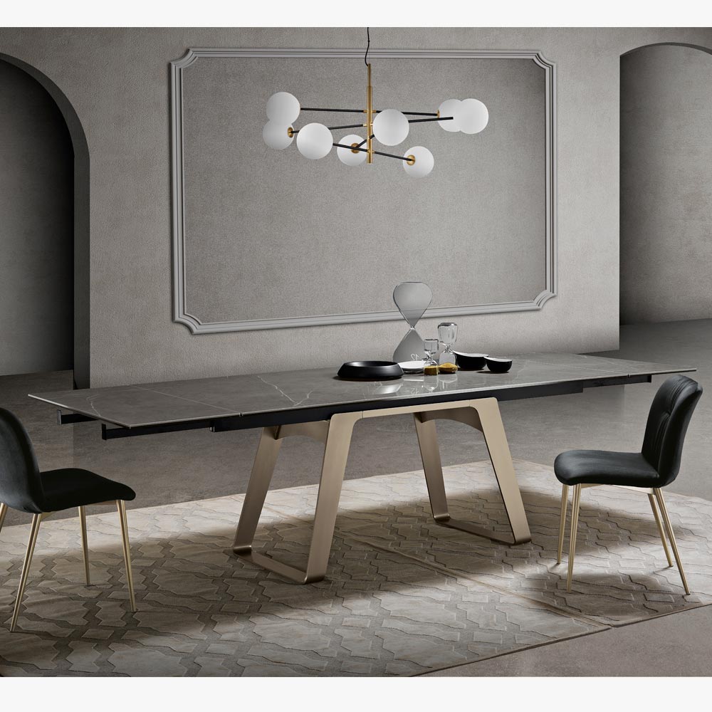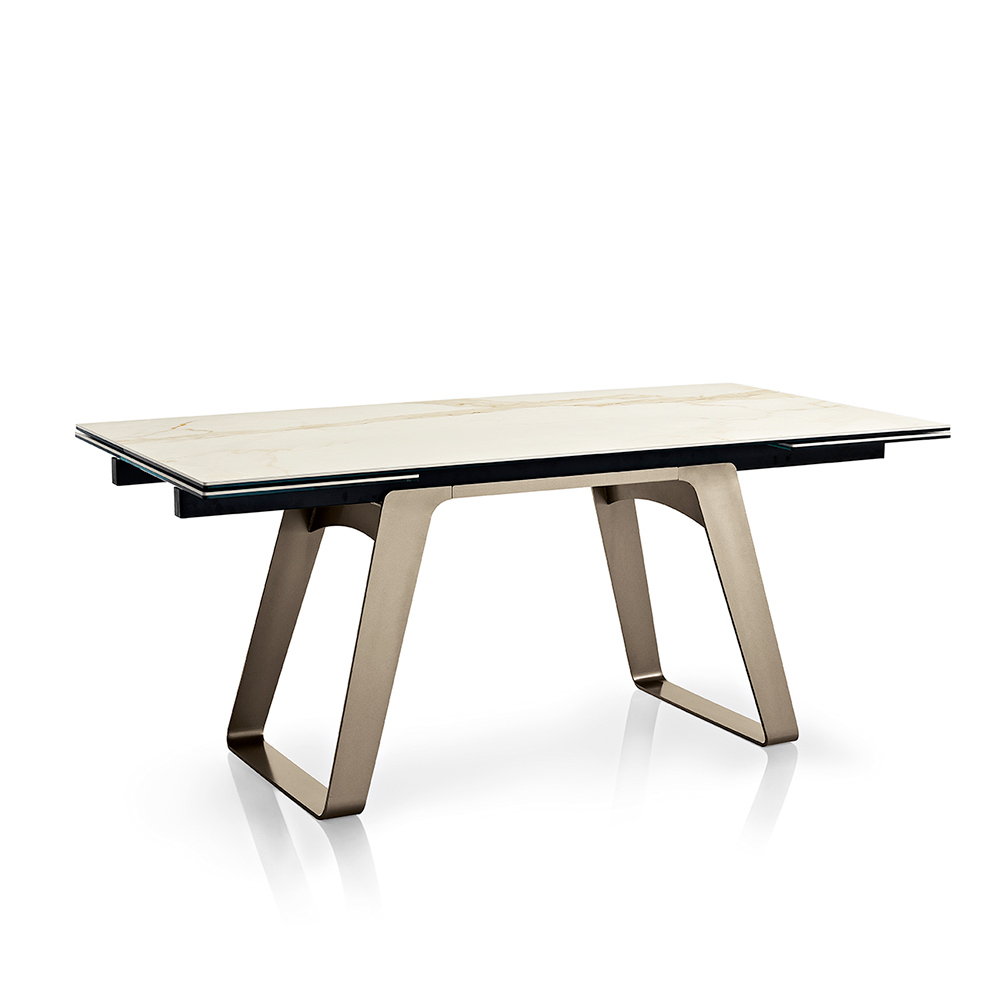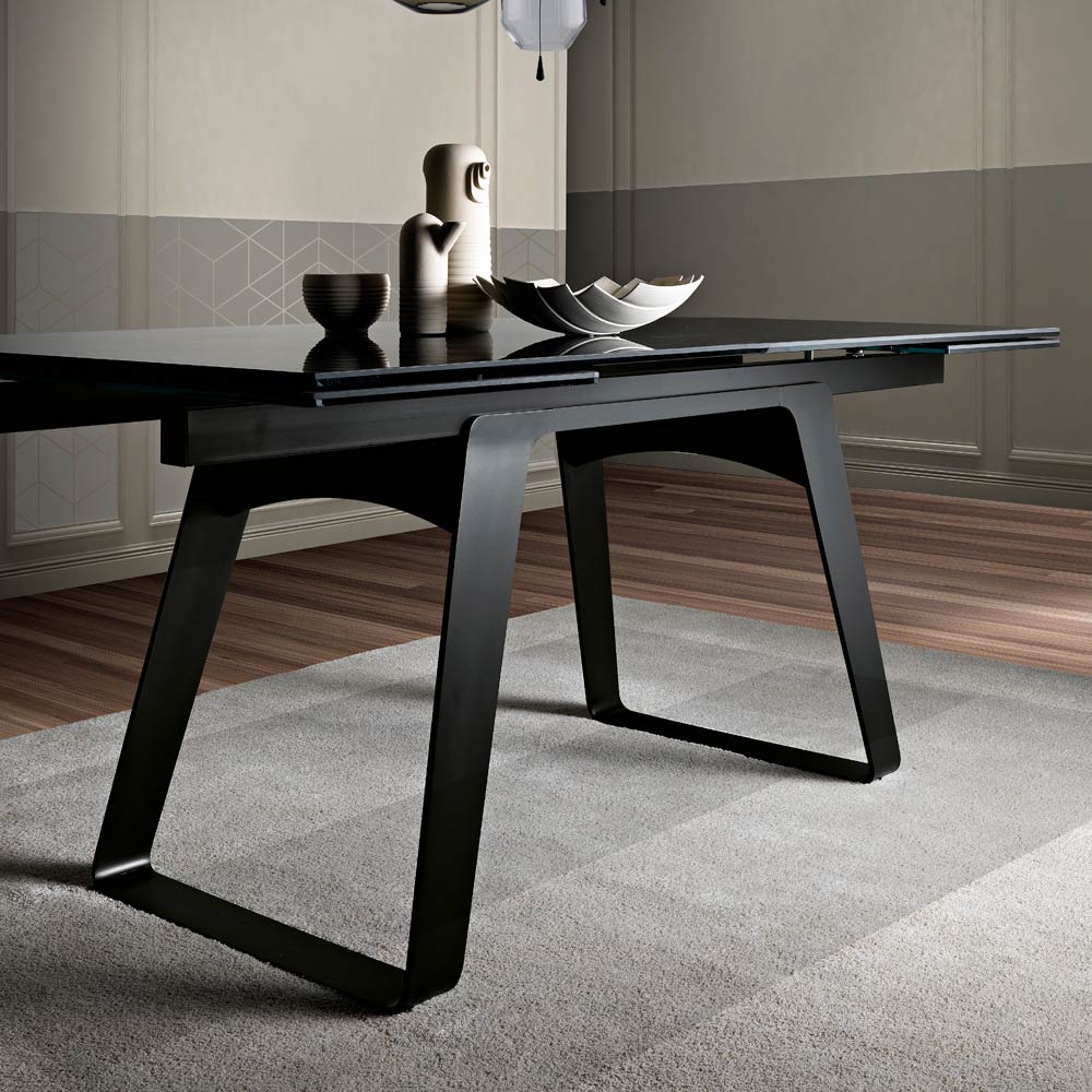 Dette bord er designet til dem, der sætter pris på kompromisløs funktionalitet og skønheden ved Made in Italy , og repræsenterer den perfekte fusion mellem kunst og teknik. Den geniale udvidelsesmulighed sikrer, at den kan tilpasse sig enhver situation, fra hverdagens familiemiddage til elegante receptioner.