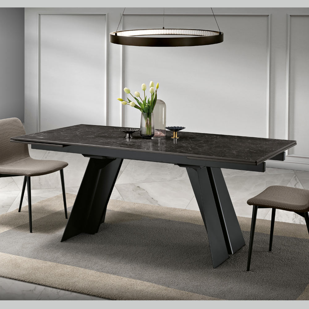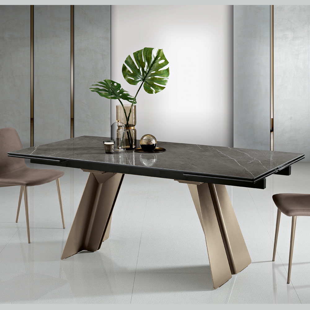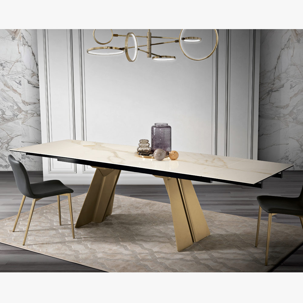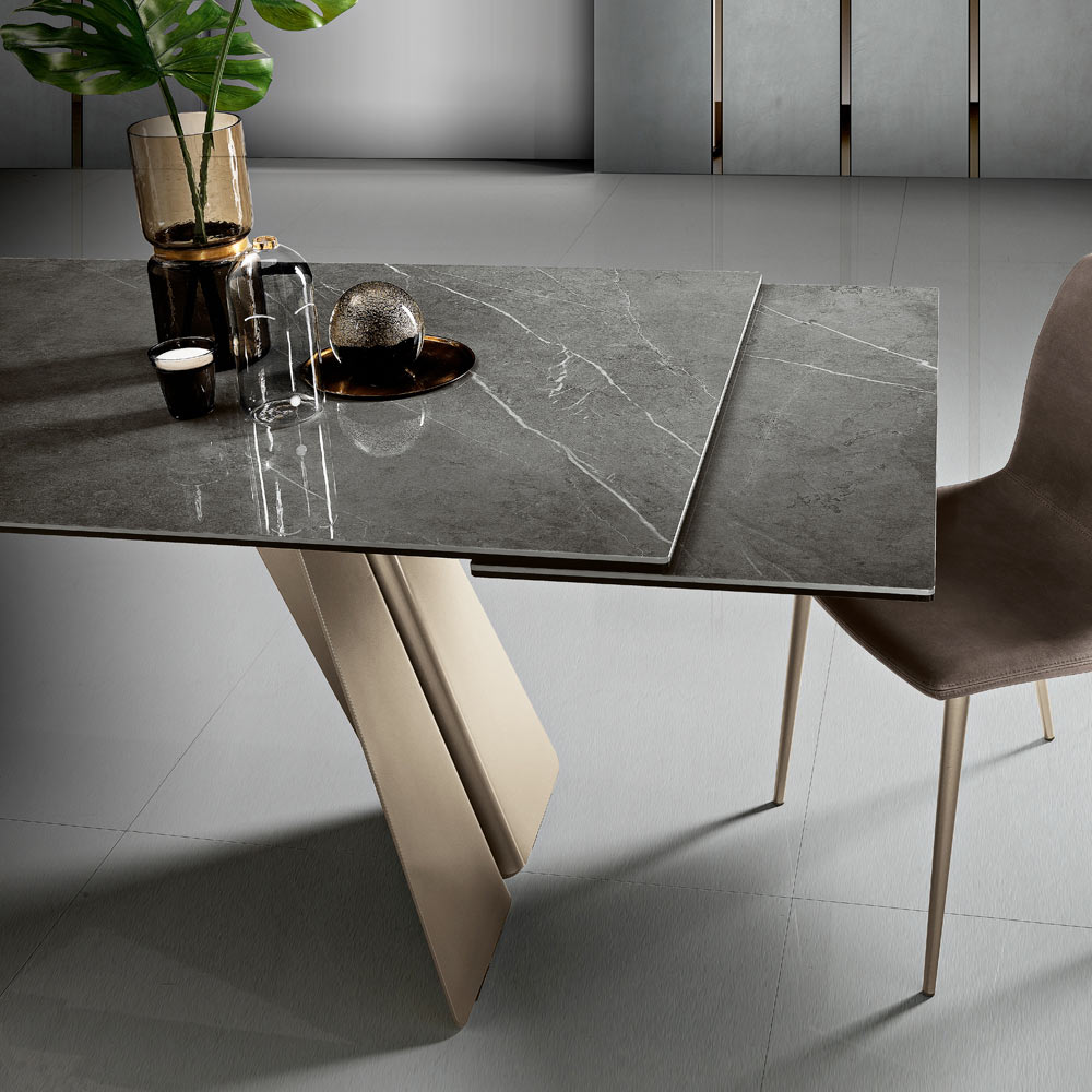 Denne kreation er meget mere end et udtrækbart bord : det er et kunstværk, der definerer ethvert miljø med dets scenografiske tilstedeværelse. Overfladen taler luksusens og naturens sprog og lover at forvandle hvert måltid til en begivenhed.