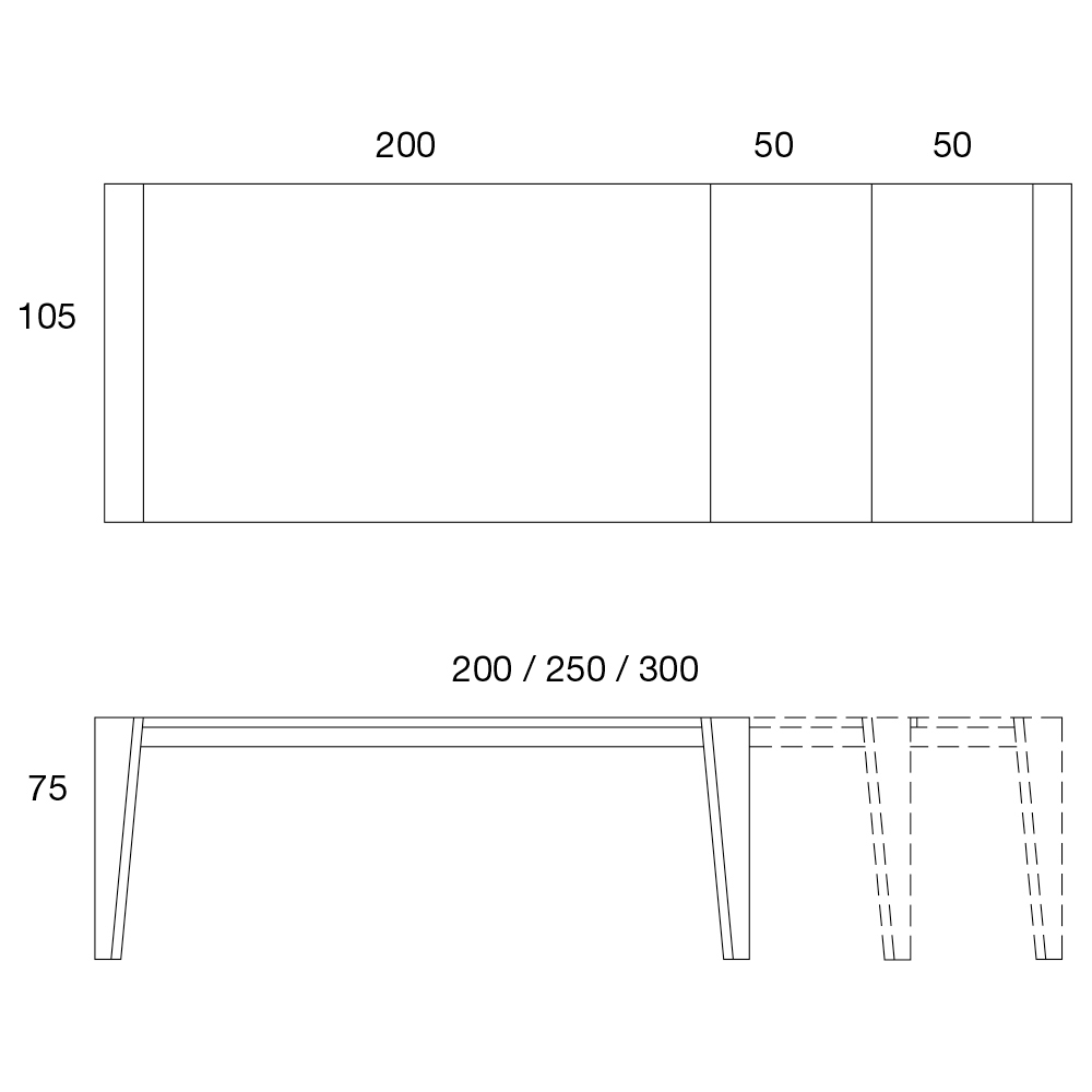 - B 200-250-300 x D 105 x H 75 cm - 2 udtræk