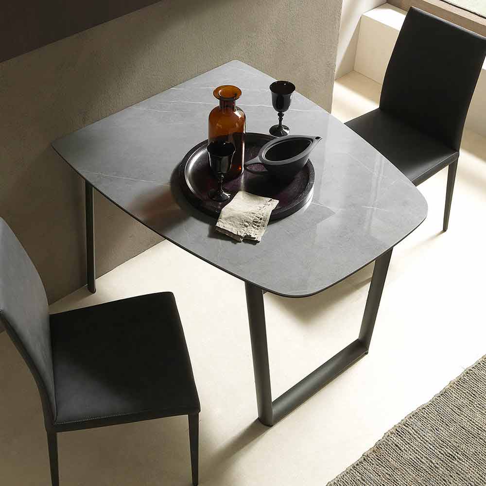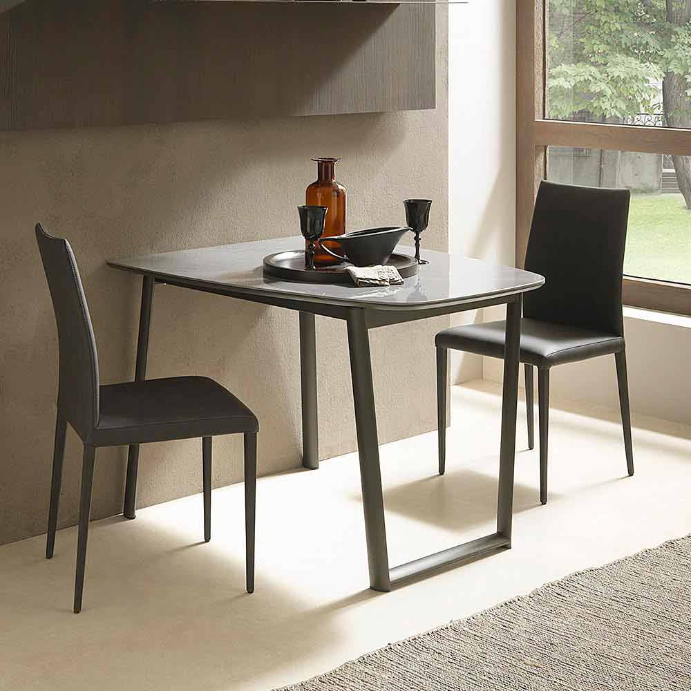 Udtrækbart spisebord op til 170 cm i metal med keramisk plade Made in Italy.