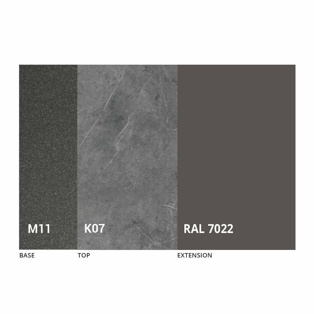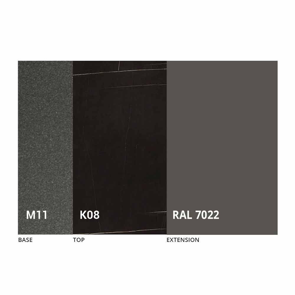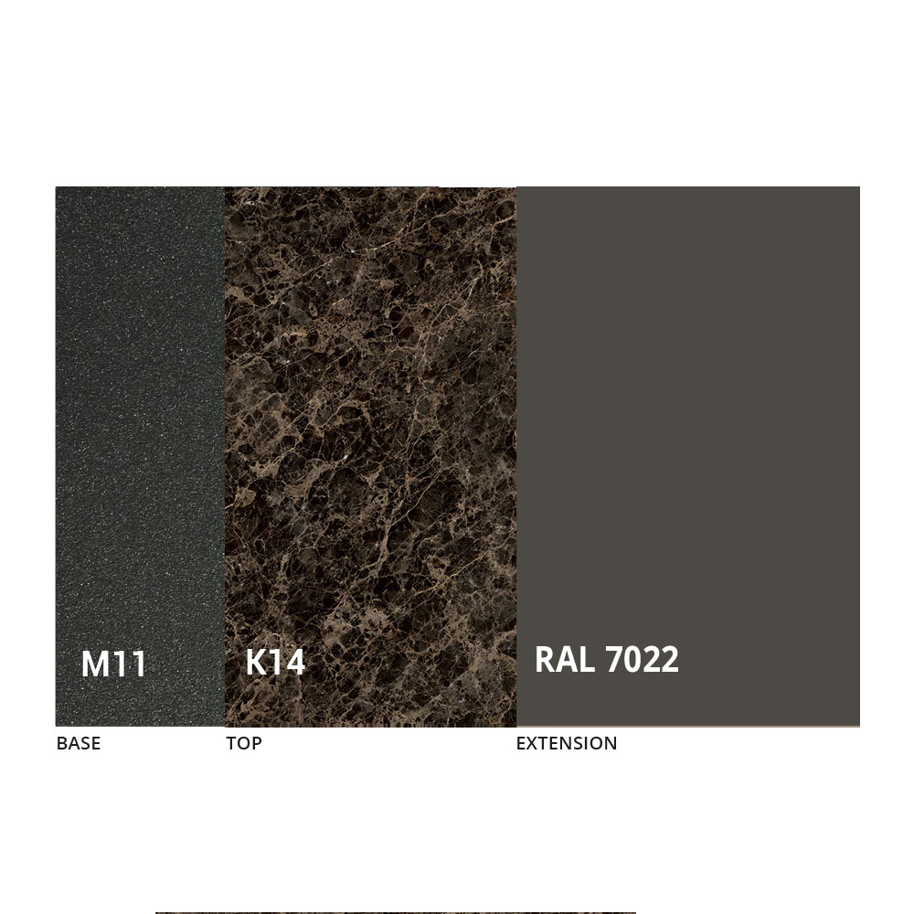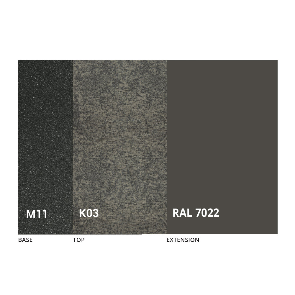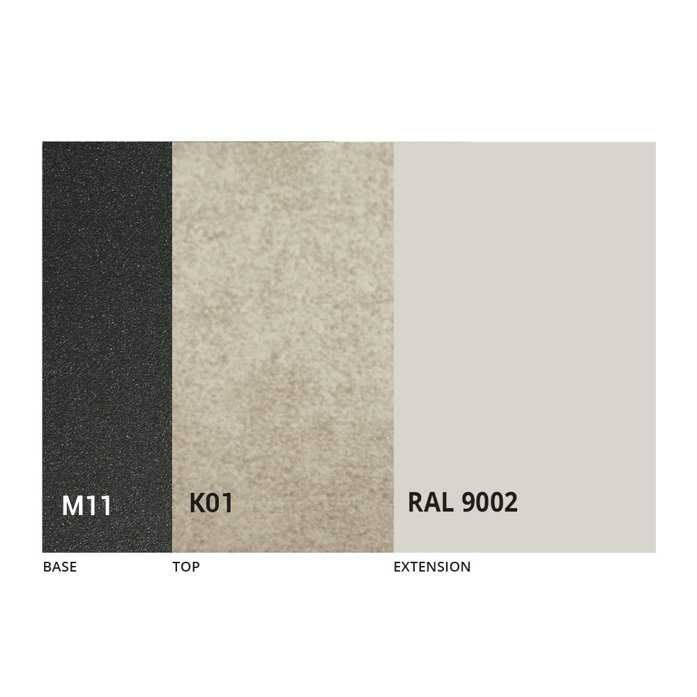 Bordpladen, forlængelsen og bunden af bordet kan tilpasses med forskellige prøvefinisher. For information, kontakt os ved at bruge formularen "