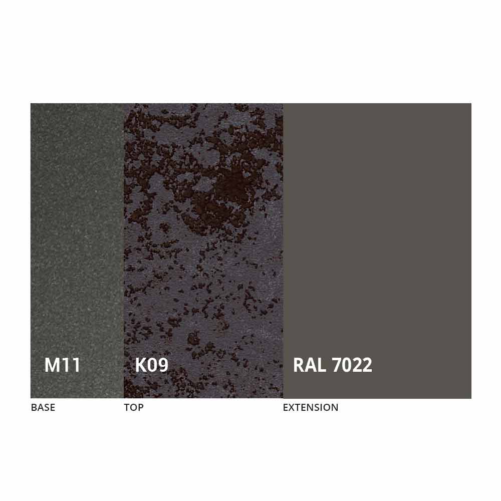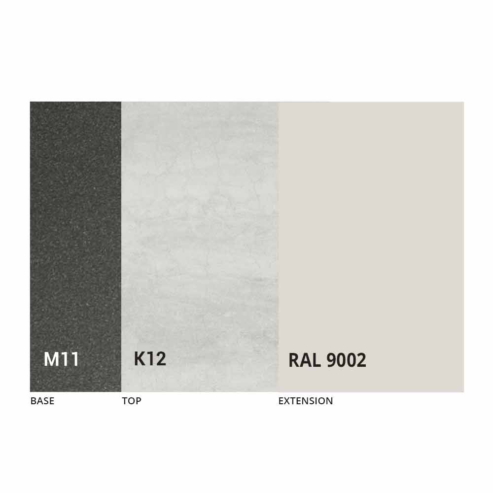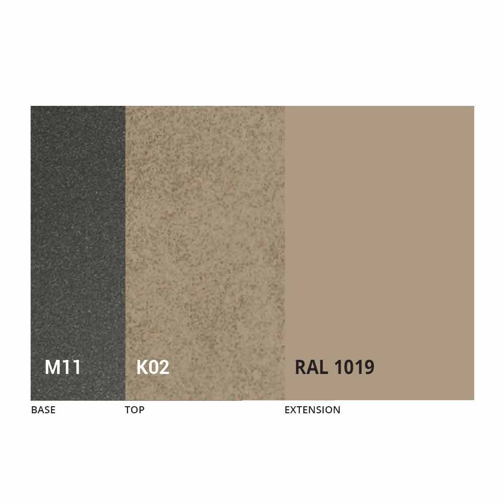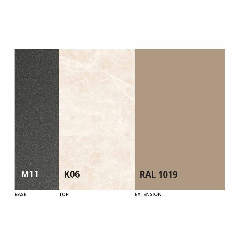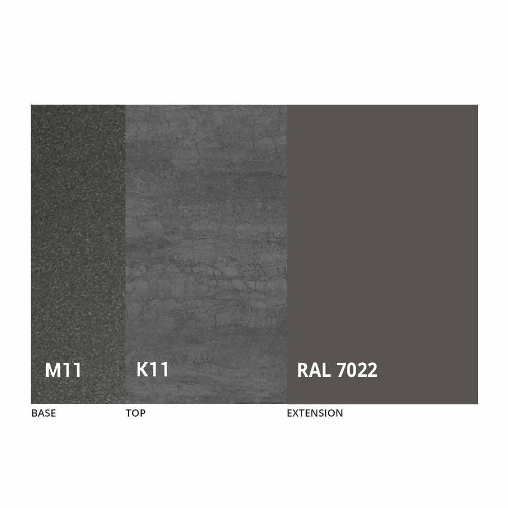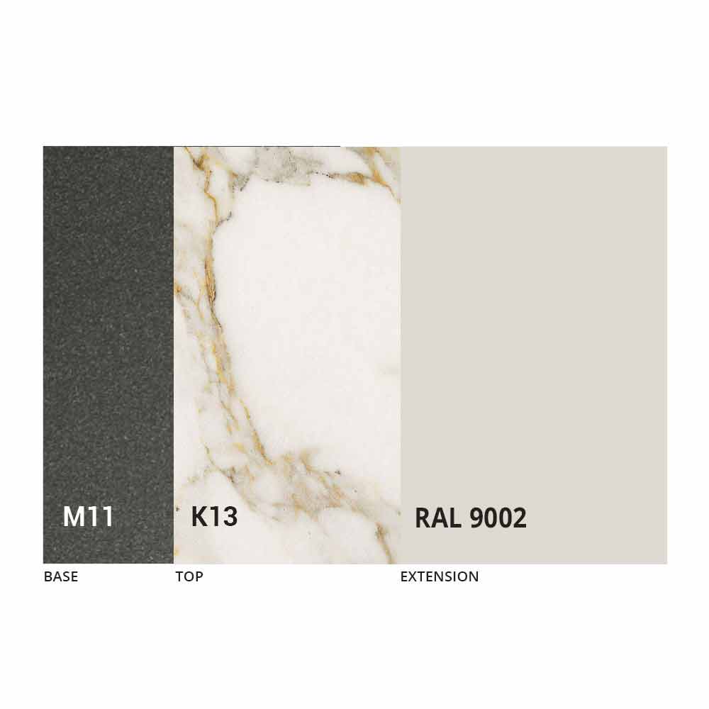 Bordpladen, forlængelsen og bunden af bordet kan tilpasses med forskellige prøvefinisher. For information, kontakt os ved at bruge formularen "