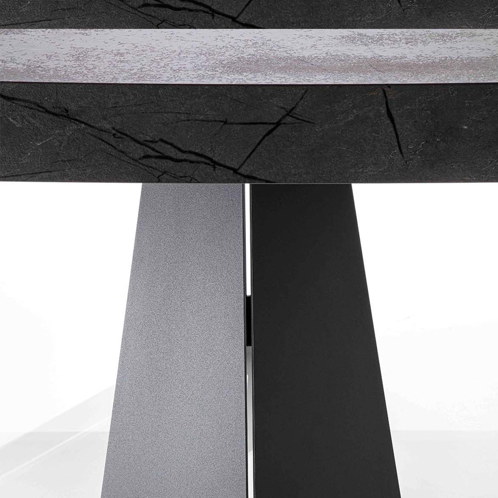 Dens design er gjort unikt og avantgarde af den særlige sorte base, som takket være dens usædvanlige linjer beriger dens æstetik og øger dens stærke karakter, hvilket gør det til et perfekt spisebord, der kan fuldende indretningen af stilfulde miljøer. moderne og raffineret. De forskellige finish, der findes til toppen, giver også mulighed for at øge dens