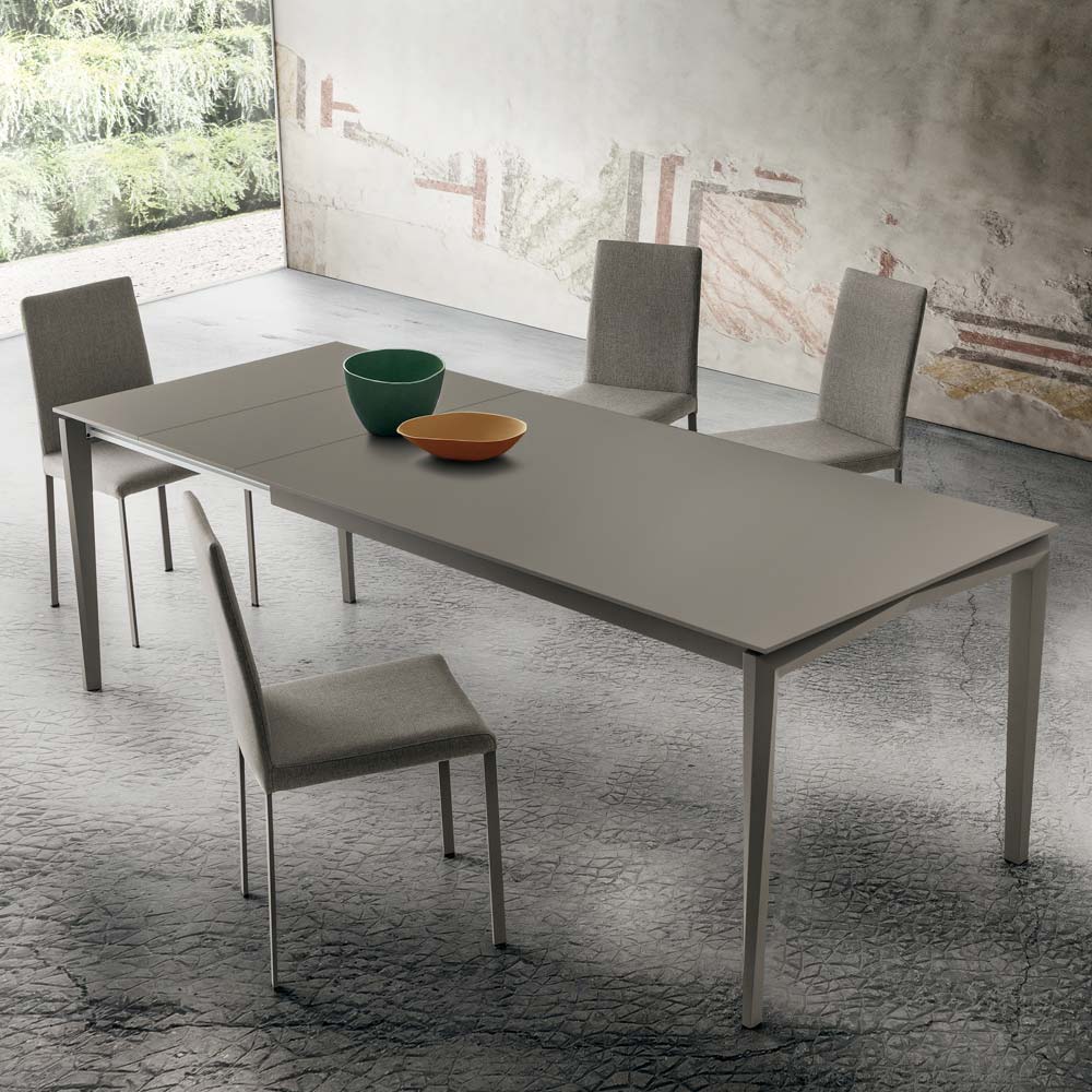 fenix-plade kantet med ABS og malet aluminiumsstyr med acetalharpiks (POM) glider. Det særlige ved dette vidunderlige indretningstilbehør er muligheden for at forlænge toppen op til en maksimal længde på 240 cm takket være de matchende forlængere lavet af samme materiale som toppen. Denne egenskab vil give den mulighed for at tilfredsstille behovene hos dem, der elsker at være vært for venner og slægtninge til frokoster og middage i selskab uden at skulle opgive en