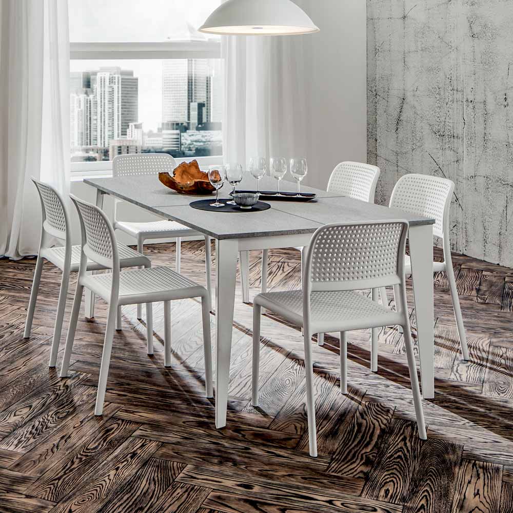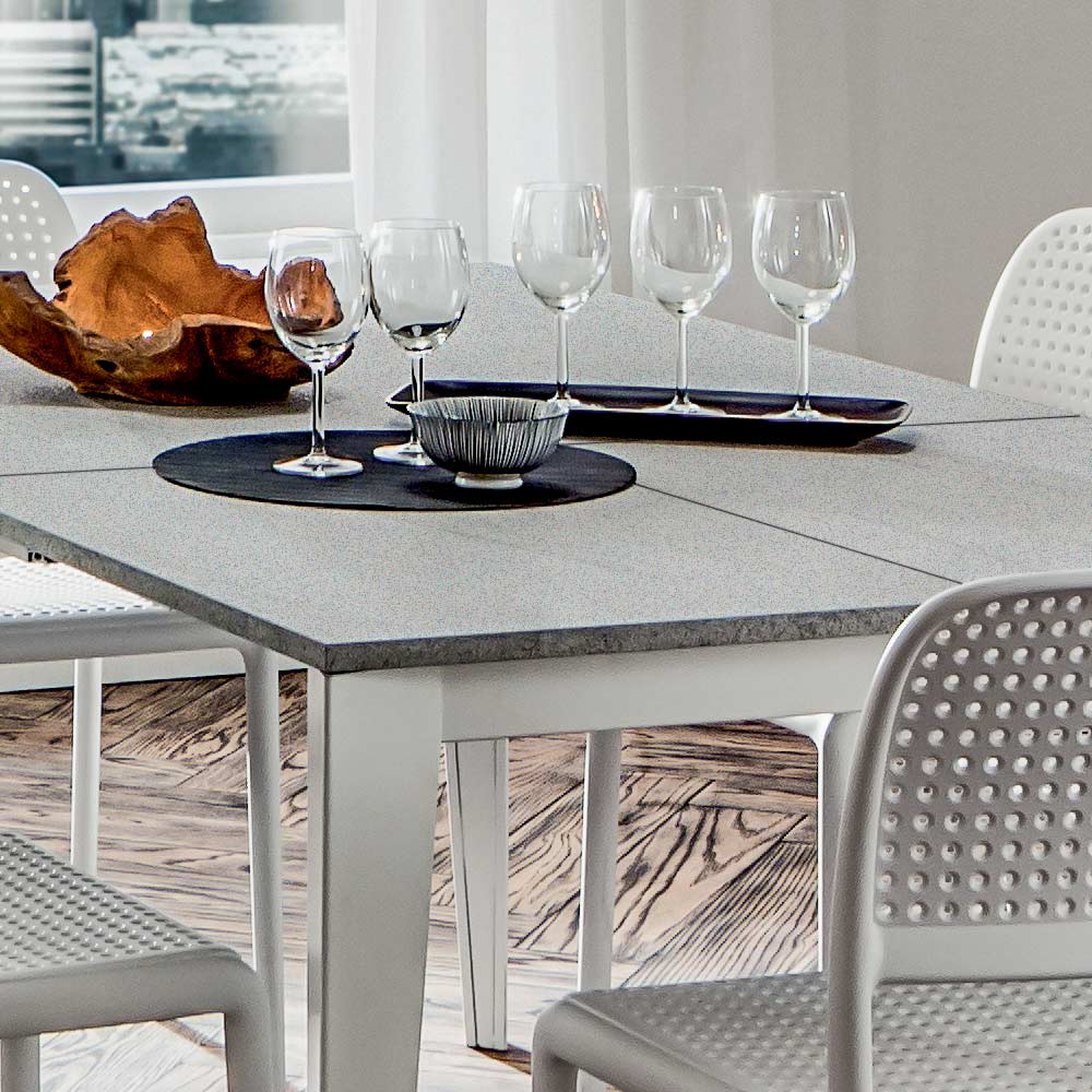 Udtrækkeligt spisebord med firkantet plade i hpl Fremstillet i Italien, høj kvalitet.
