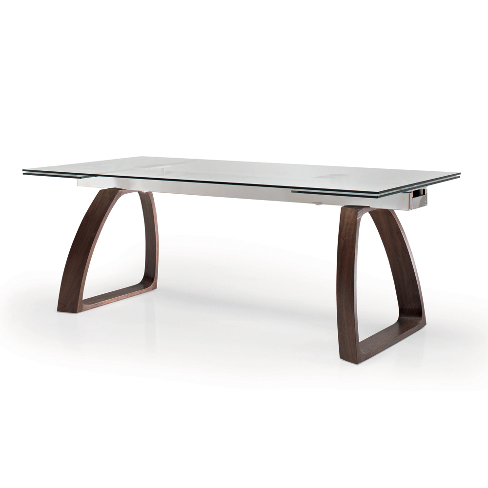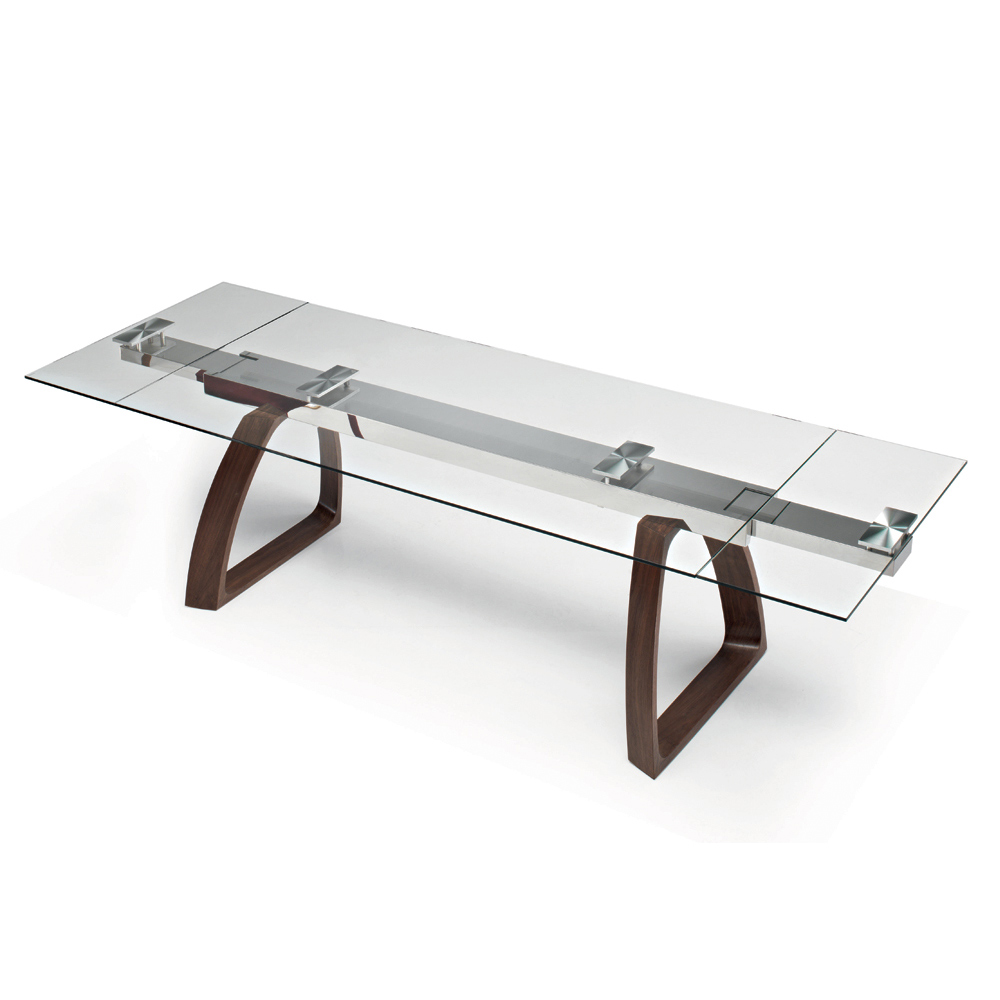 Udtrækkeligt spisebord med glasplade og træbund Made in Italy.