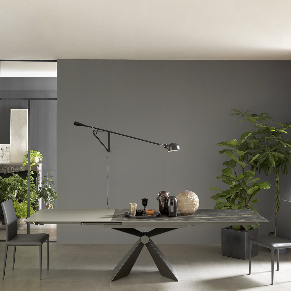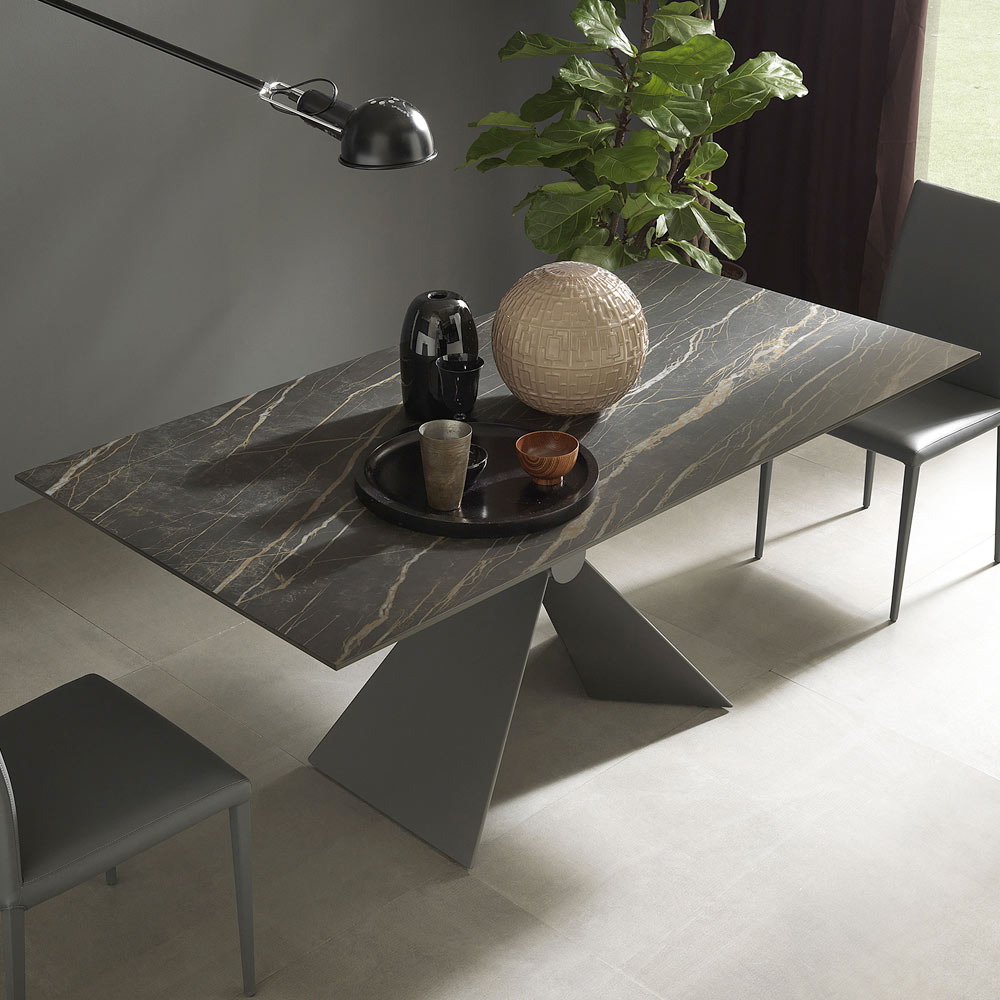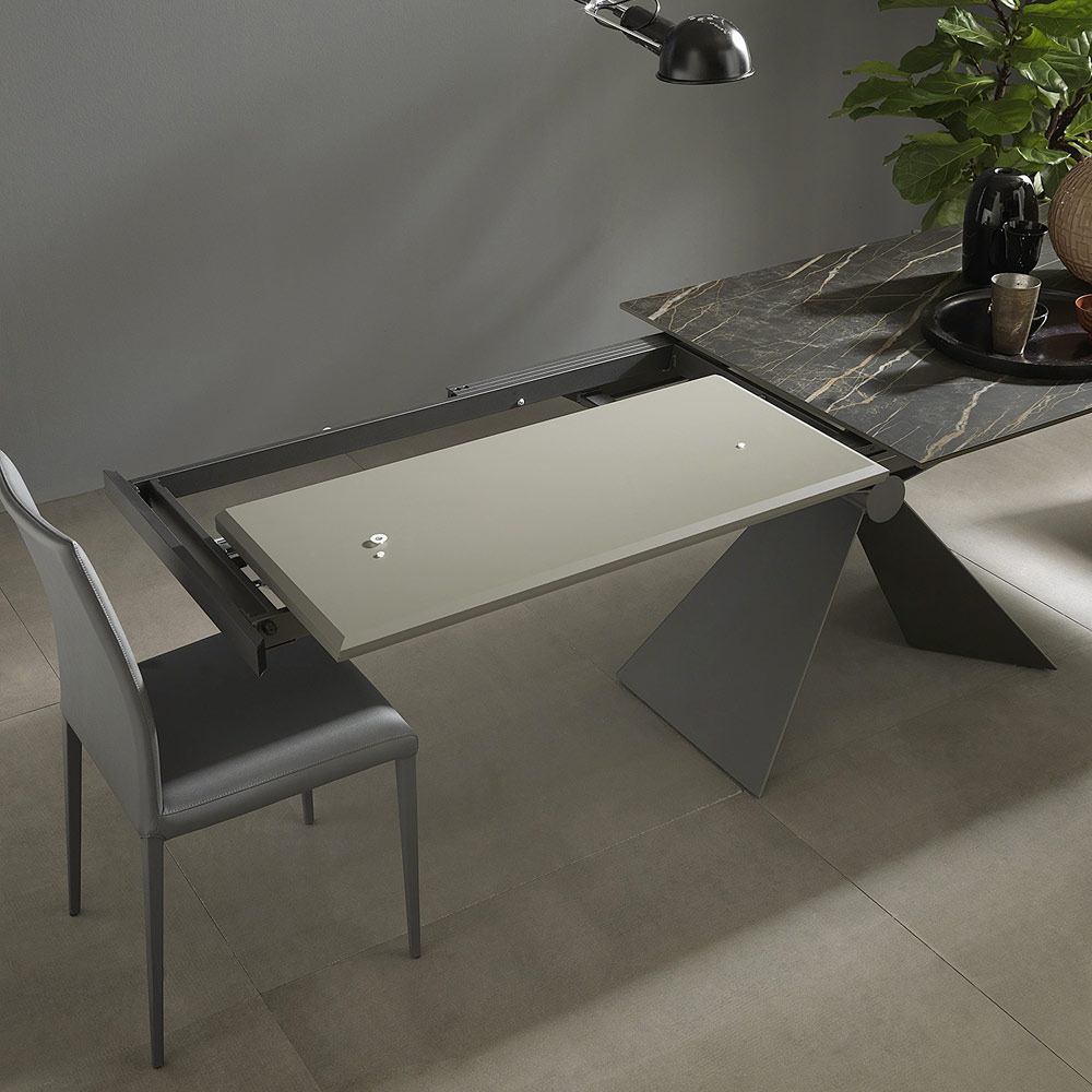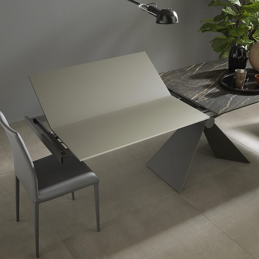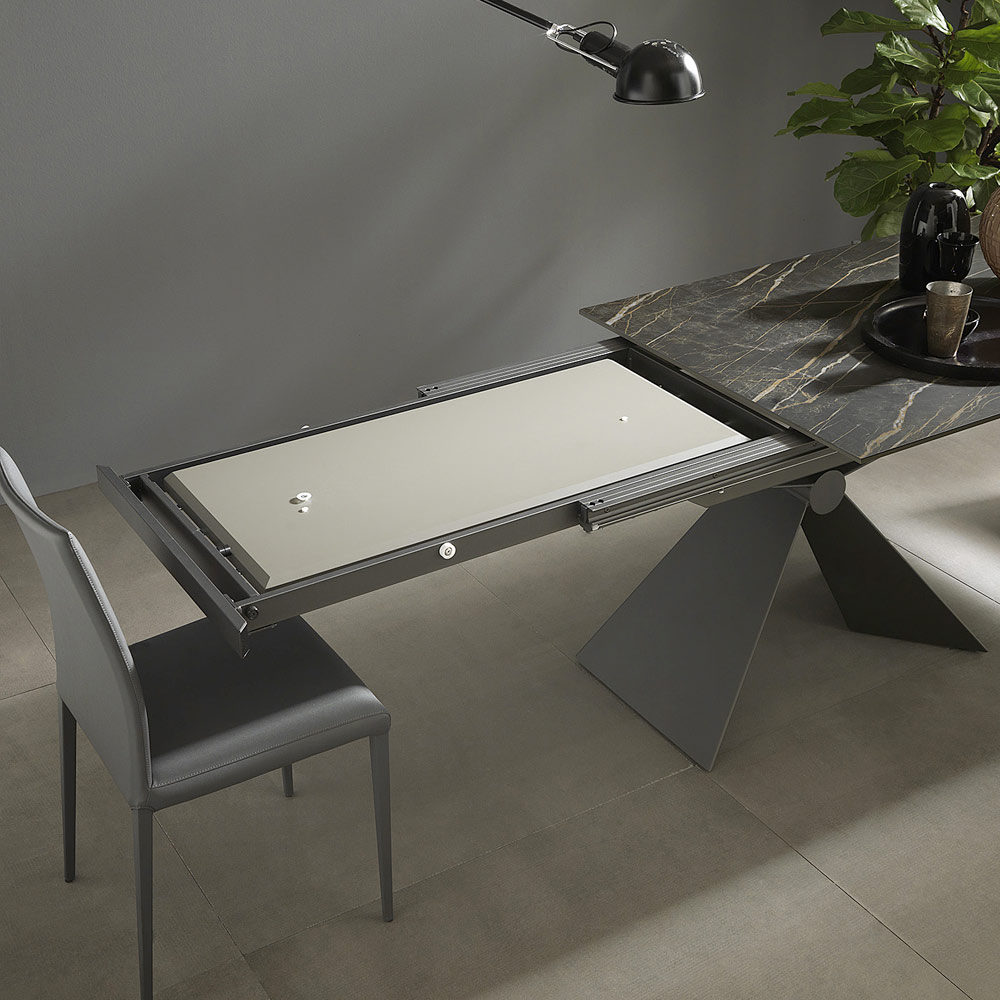 Moderne udtrækkeligt spisebord i keramik og metal Made in Italy.