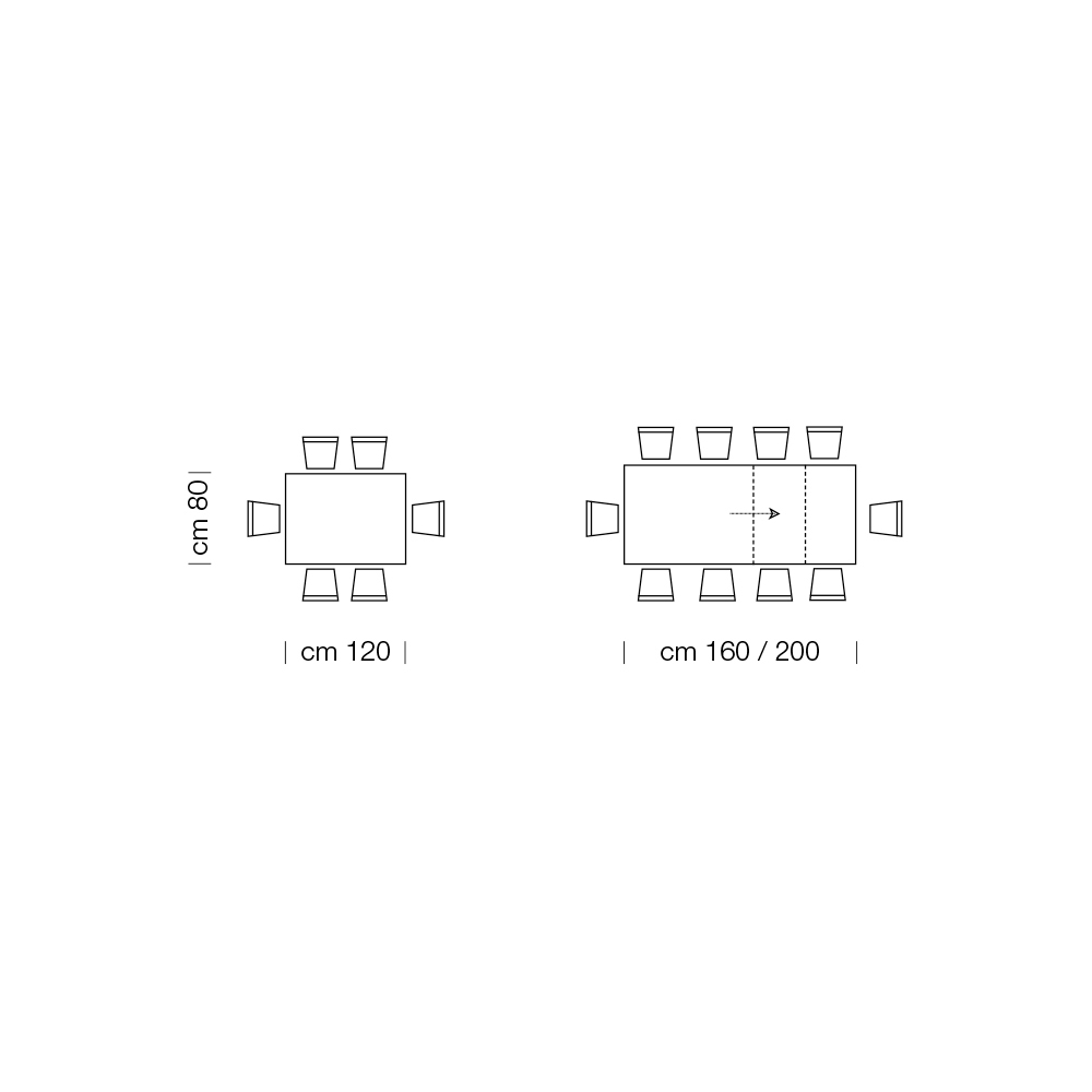 - L 120 (160) x D 80 x H 75 cm 8 sæder, der kan forlænges med en indvendig 40 cm forlængelse;