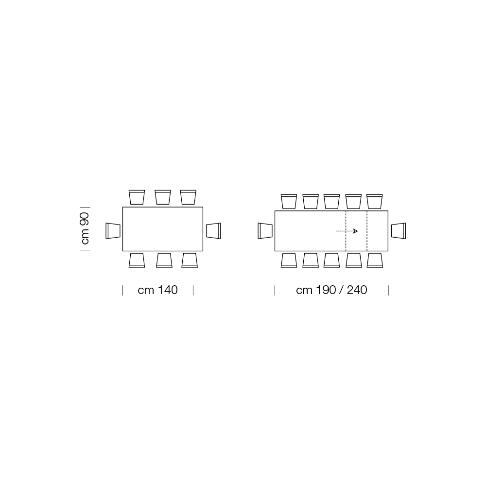- L 140 (240) x D 90 x H 75 cm 12 personers forlængelse med to indvendige forlængere på hver 50 cm;