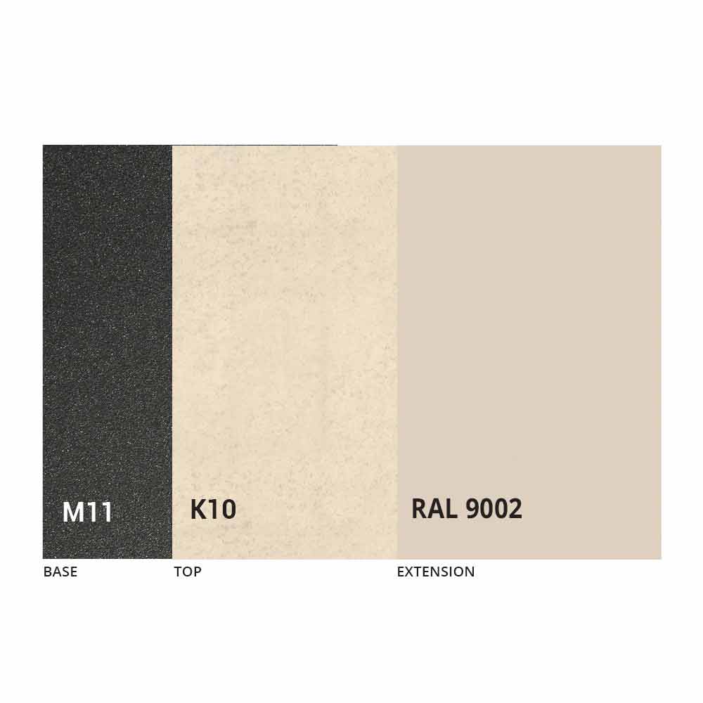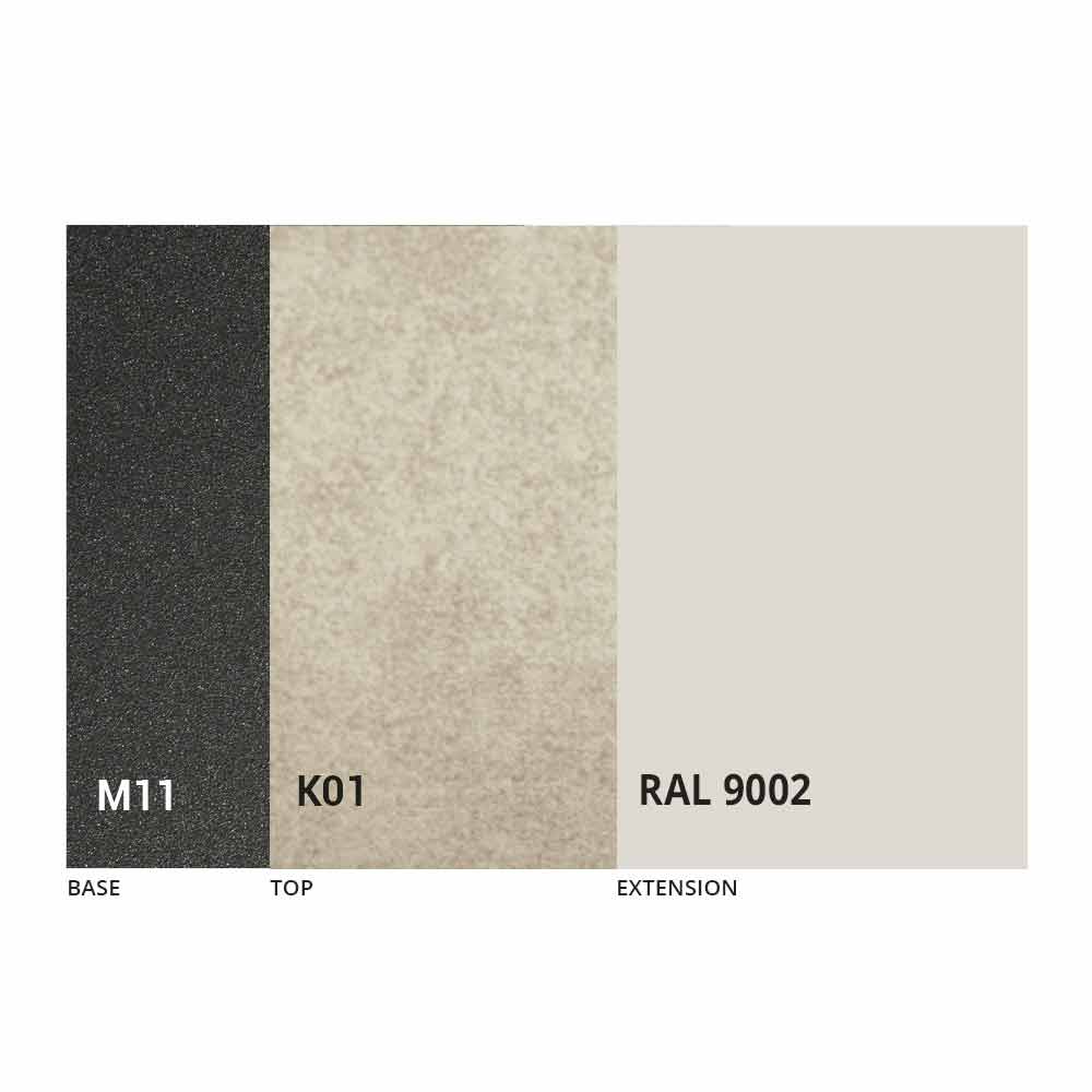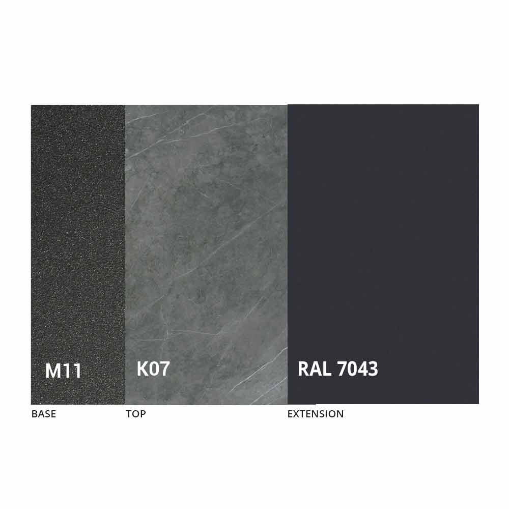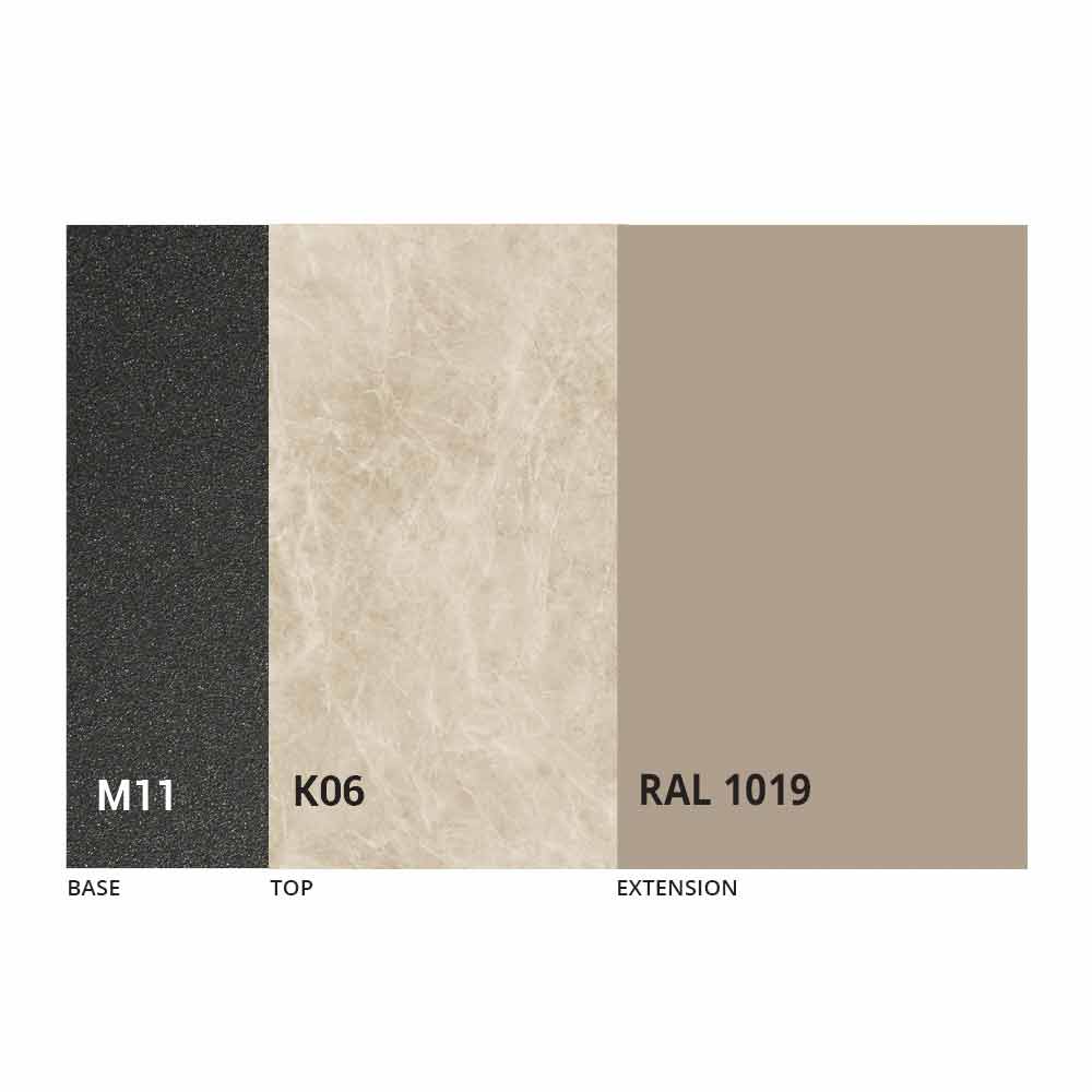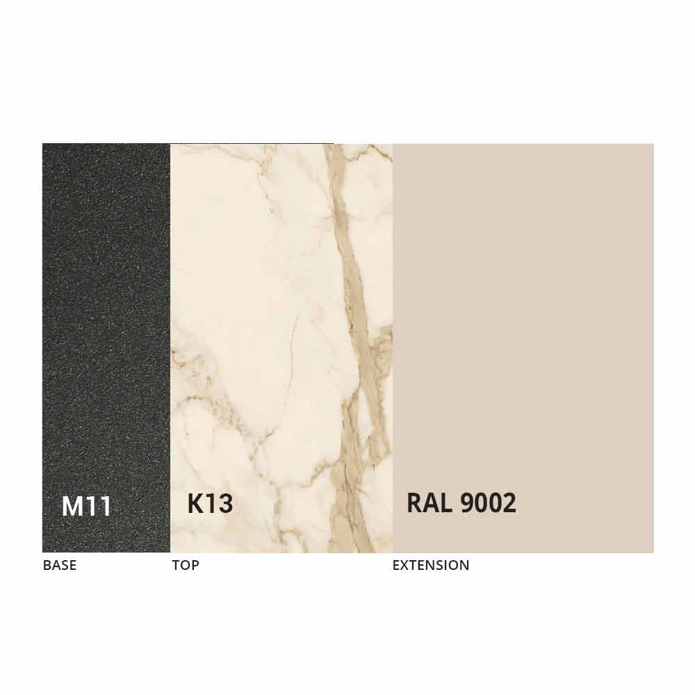 NB: Når bordet åbnes, er det nødvendigt at løfte forlængeren, placere den i niveau med toppen og først derefter åbne den. Bordets top og bund kan tilpasses med forskellige materialer og prøvefinish eller RAL-lakering. For information, kontakt os ved hjælp af den relevante formular " Anmod om oplysninger" .