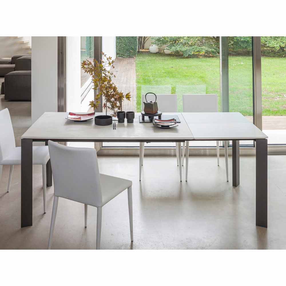 Udtrækkeligt spisebord lavet af keramik og metalfod lavet i Italien.