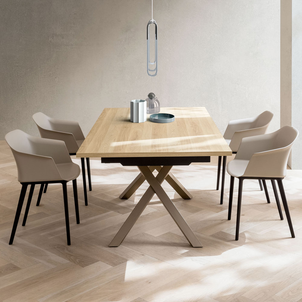 HPL- bordpladen er perfekt til hverdagsbrug uden at gå på kompromis med æstetikken. Takket være den integrerede forlængermekanisme kan bordet nemt forlænges, så det nemt kan rumme flere gæster, og det bliver den perfekte hovedperson til familiefrokoster og middage med venner.