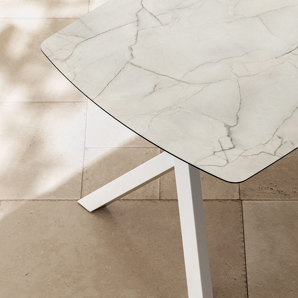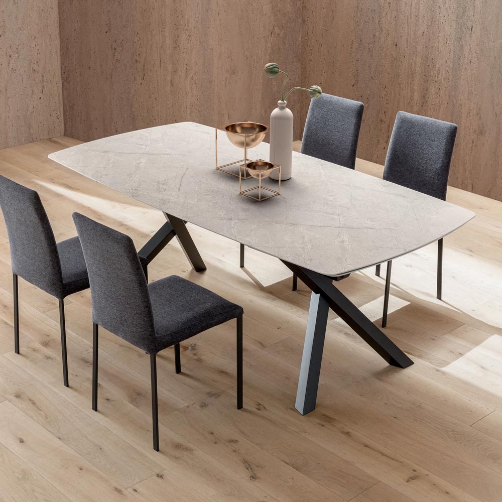 Den malede metalstruktur med krydsede ben med en stærk visuel effekt giver stabilitet, robusthed og arkitektonisk stil , hvilket gør dette bord perfekt til moderne, elegante og åbne rum .