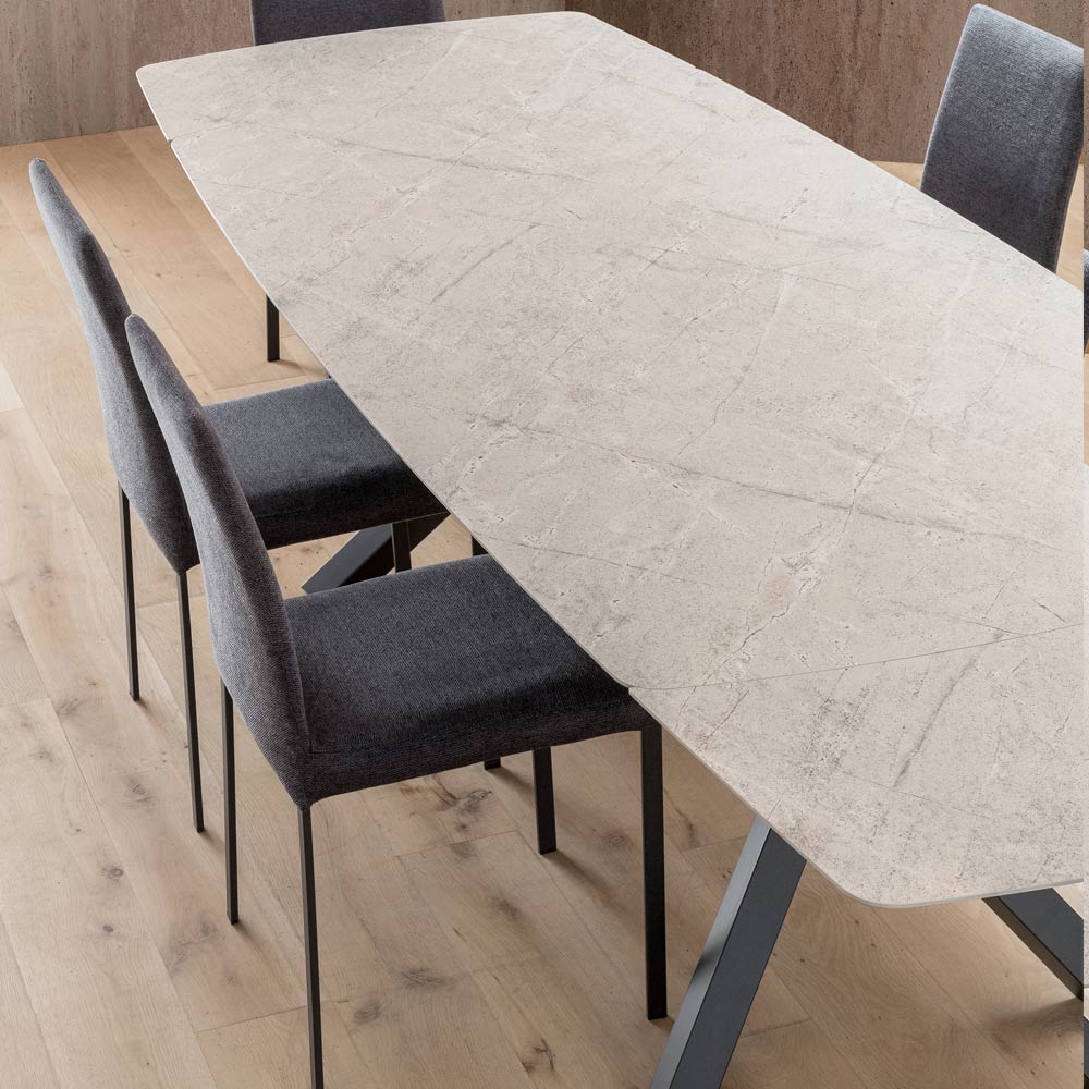 Takket være det integrerede forlængersystem med sidelæns forlængelser kan bordet nemt trækkes ud, hvilket sikrer maksimal fleksibilitet ved enhver lejlighed, fra den daglige frokost til møder med mange gæster.