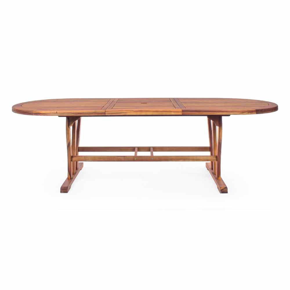 Udendørs spisebord af akacietræ med udtrækkelig top.