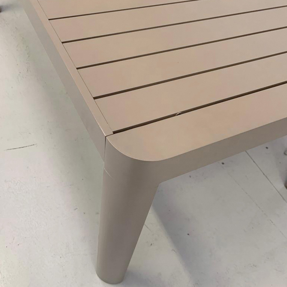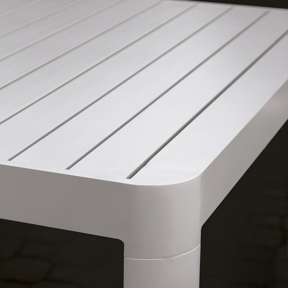 Dette udtrækkelige aluminiumsbord er et eksempel på elegant og funktionelt design perfekt til udendørs brug. Dens finish og rene linjer fremkalder en følelse af modernitet og rummelighed, og tilbyder en indbydende overflade til enhver lejlighed, fra familiemåltider til middage med venner. Aluminiumsstrukturen garanterer ikke kun visuel lethed , men er også synonym med robusthed og modstand .