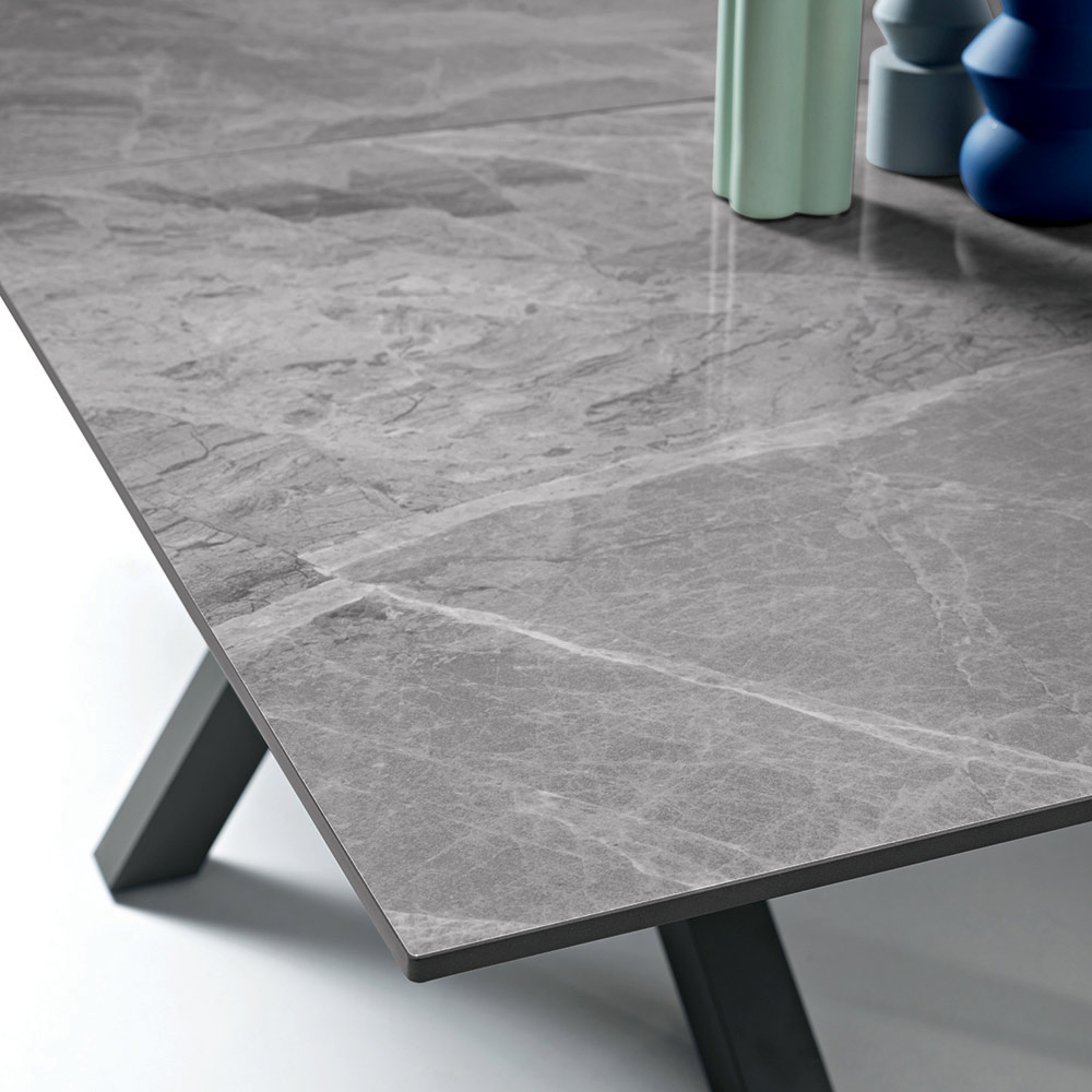 Det centrale forlængersystem muliggør hurtig udvidelse af bordets overfladeareal, hvilket gør det ideelt til både hverdagsbrug og underholdning. Bordet fås i forskellige kombinationer af top- og basefinish og tilpasser sig nemt forskellige stilarter og paletter.