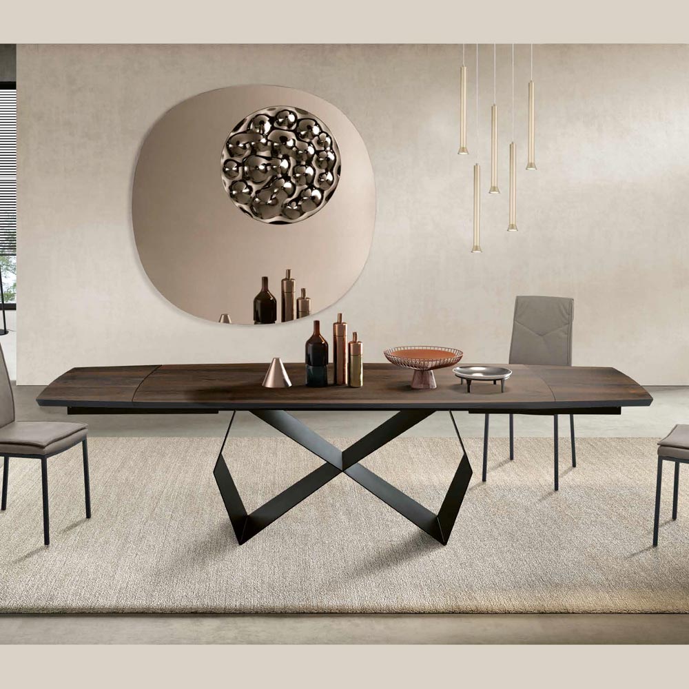 Metalbenene , der har en fed, geometrisk form, er malet for at kontrastere smukt med trætonen. Denne kombination af materialer giver ikke kun solid stabilitet, men tilføjer også et slagkraftigt visuelt element, hvilket gør dette bord til et rigtigt fokuspunkt i enhver spisestue eller åbent planområde.