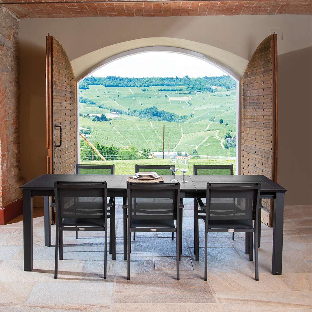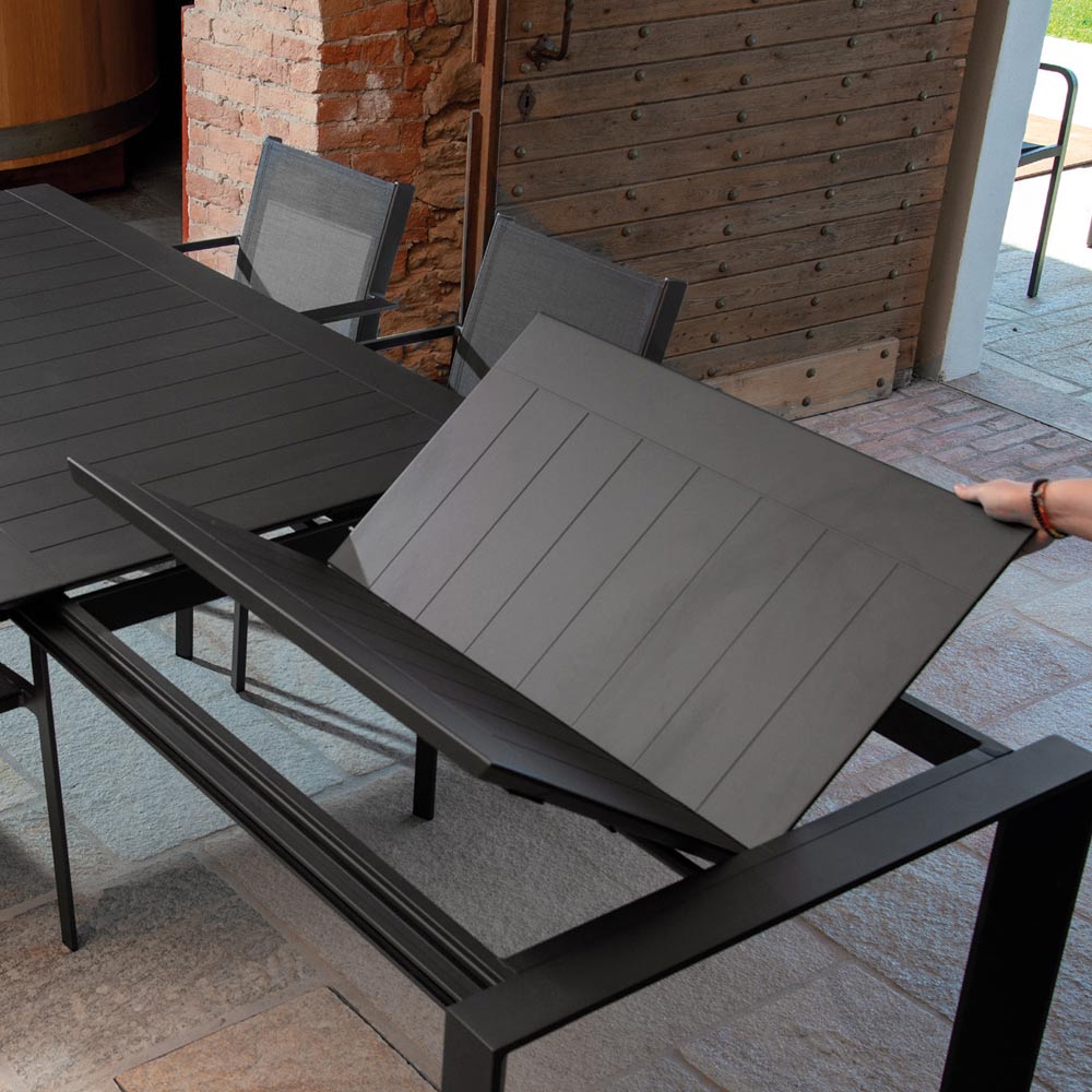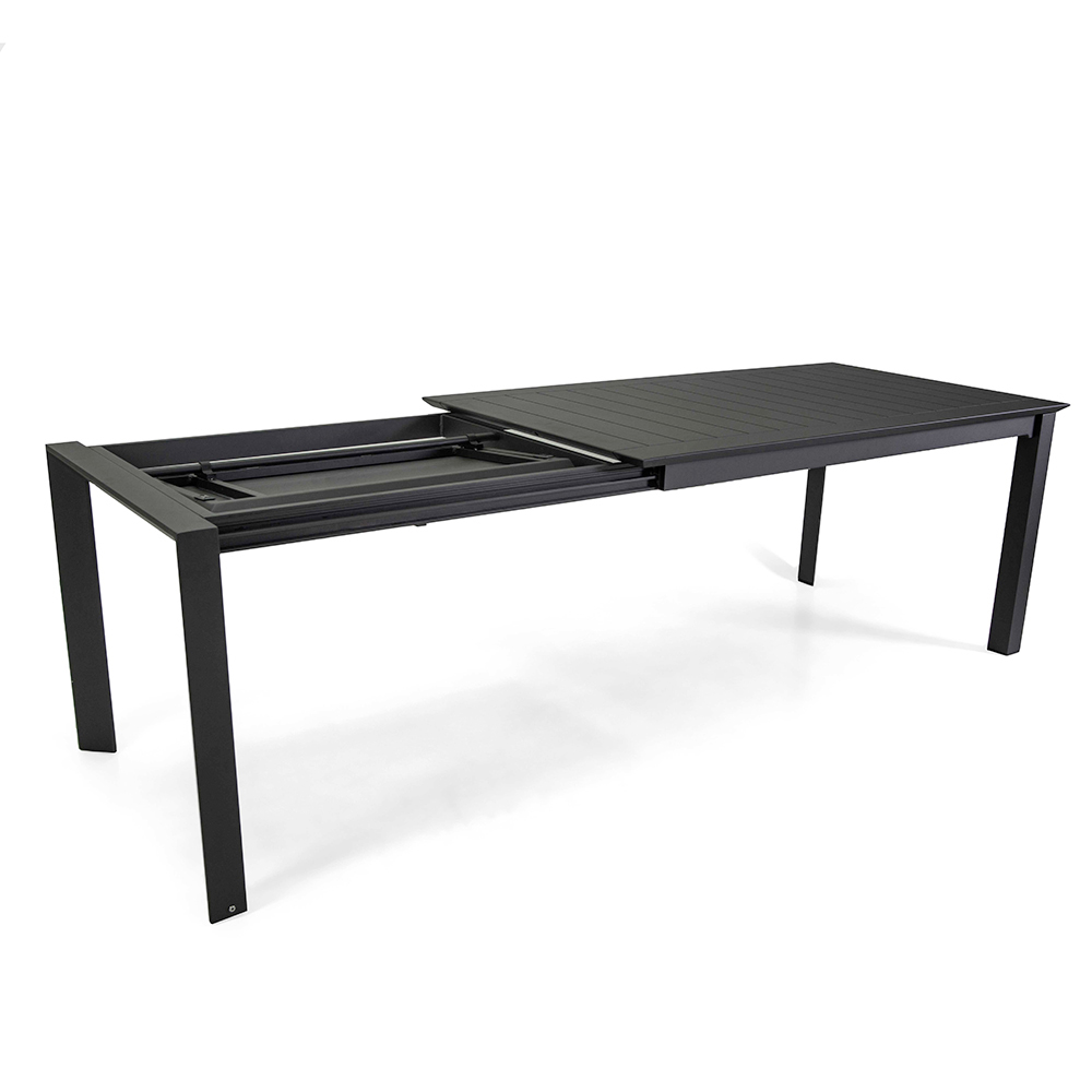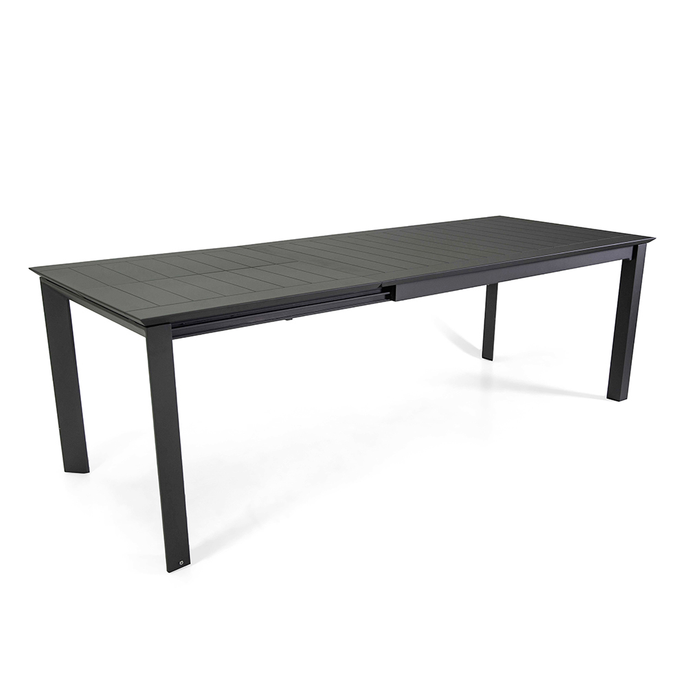 Dette udtrækkelige aluminiumsbord er det ideelle valg for dem, der ønsker alsidighed uden at gå på kompromis med stil og kvalitet. Bordet er fremstillet af en robust aluminiumsramme og kombinerer holdbarhed med lethed, hvilket gør det perfekt til udendørs brug under alle vejrforhold. Finishen tilføjer et strejf af moderne elegance, der passer perfekt ind i ethvert udendørs miljø, fra haven til terrassen.