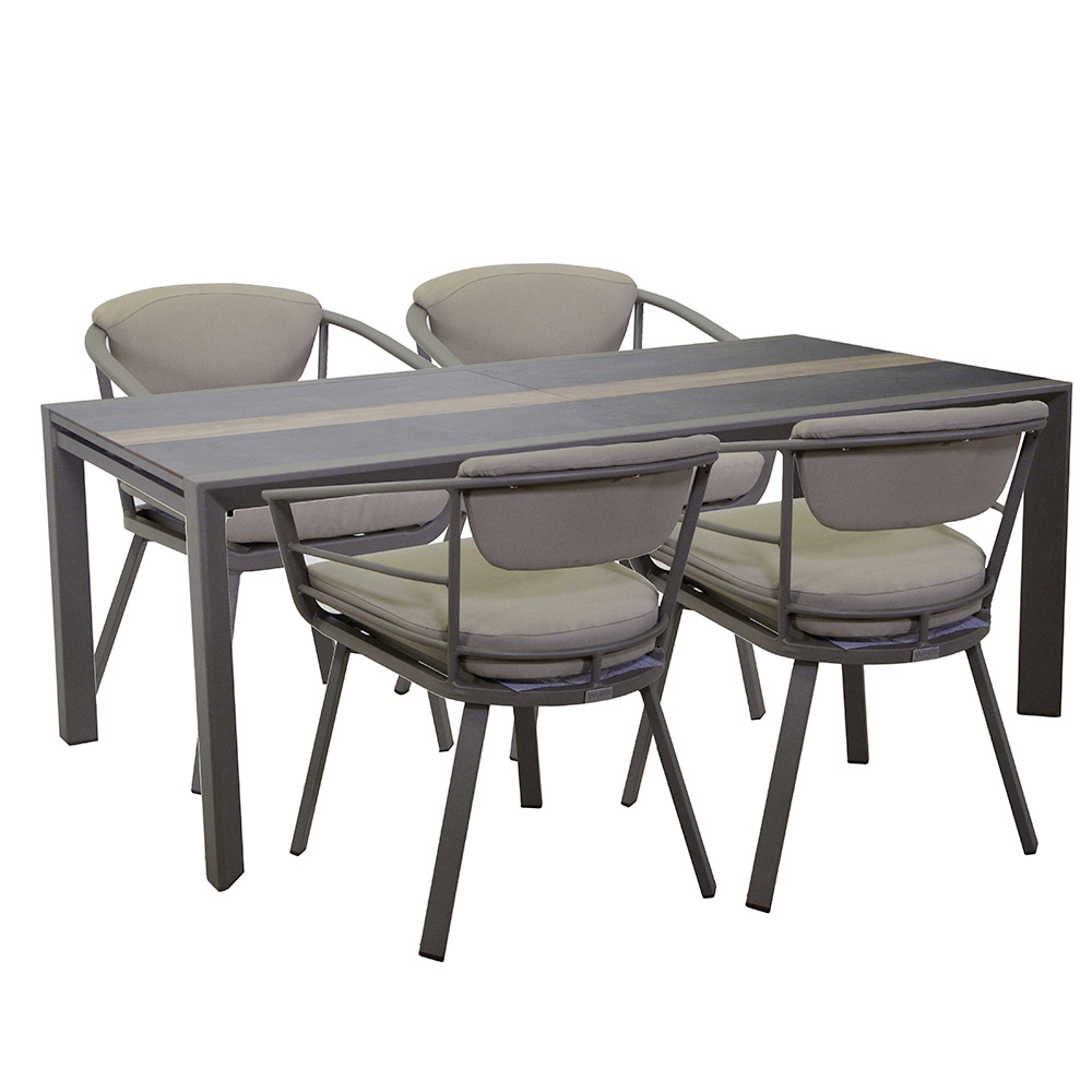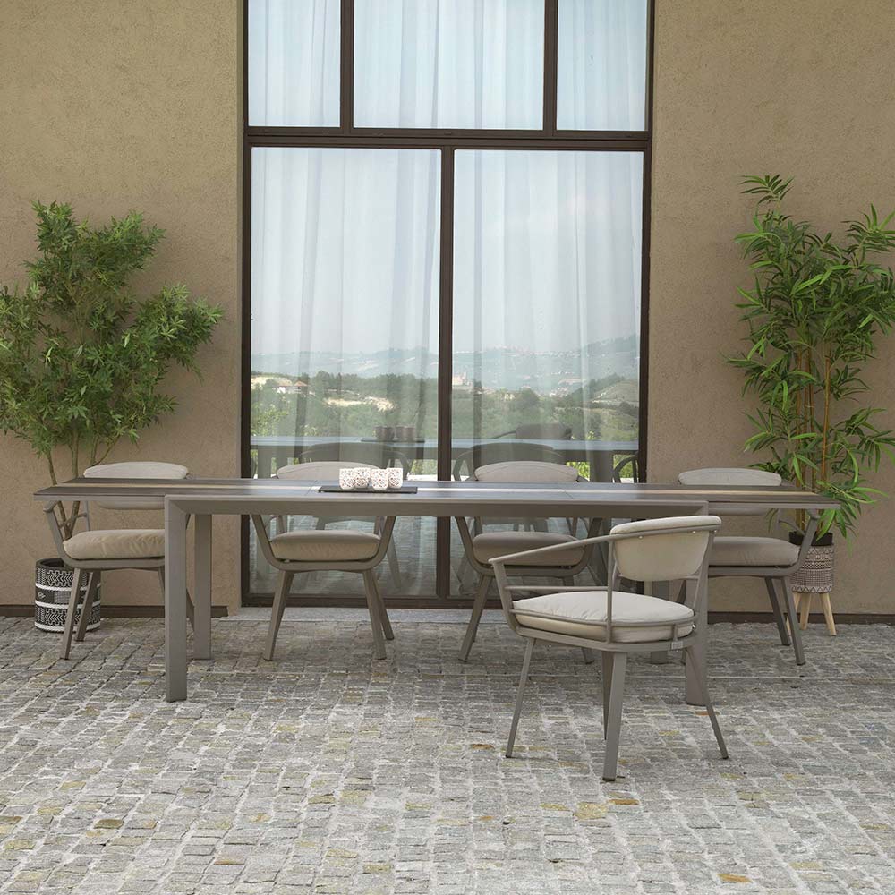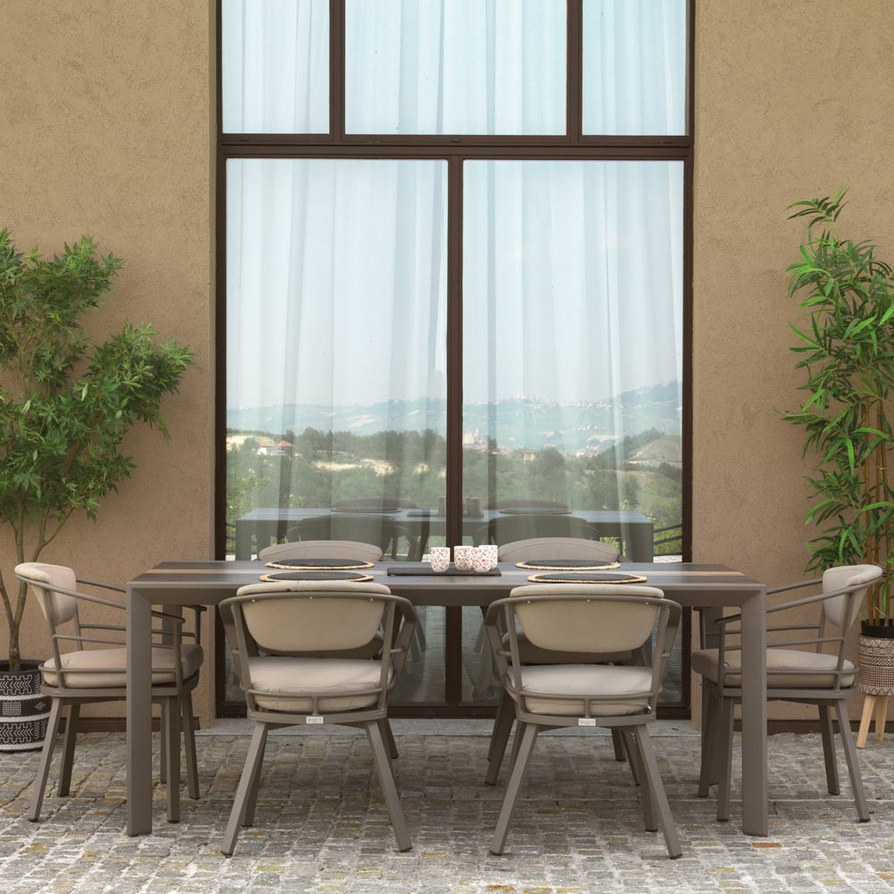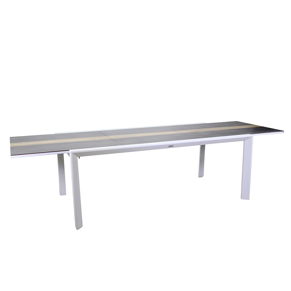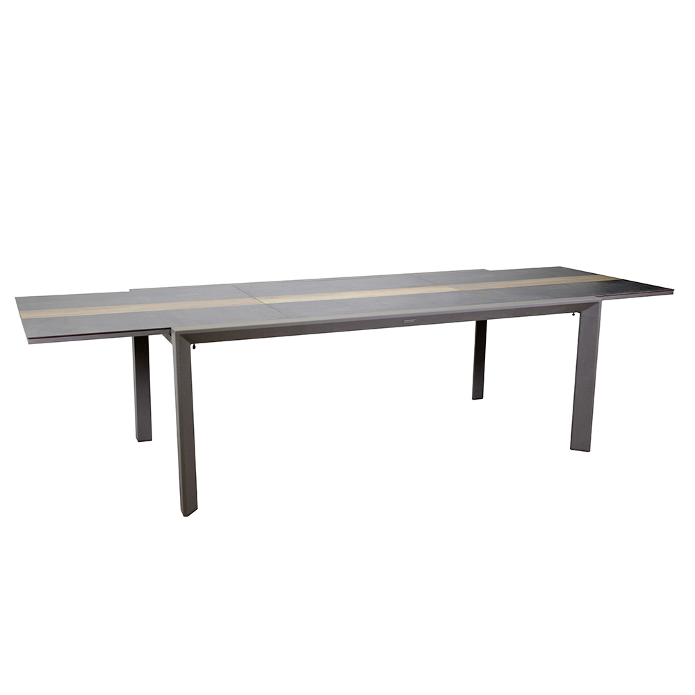 Med en central skydeåbning tilbyder dette bord en unik fleksibilitet, så du nemt kan udvide det, når det er nødvendigt, hvilket gør det perfekt til at være vært for venner og familie. HPL-overfladen er også kendt for at være vejrbestandig og nem at rengøre, hvilket sikrer en langtidsholdbar og vedligeholdelsesvenlig investering.