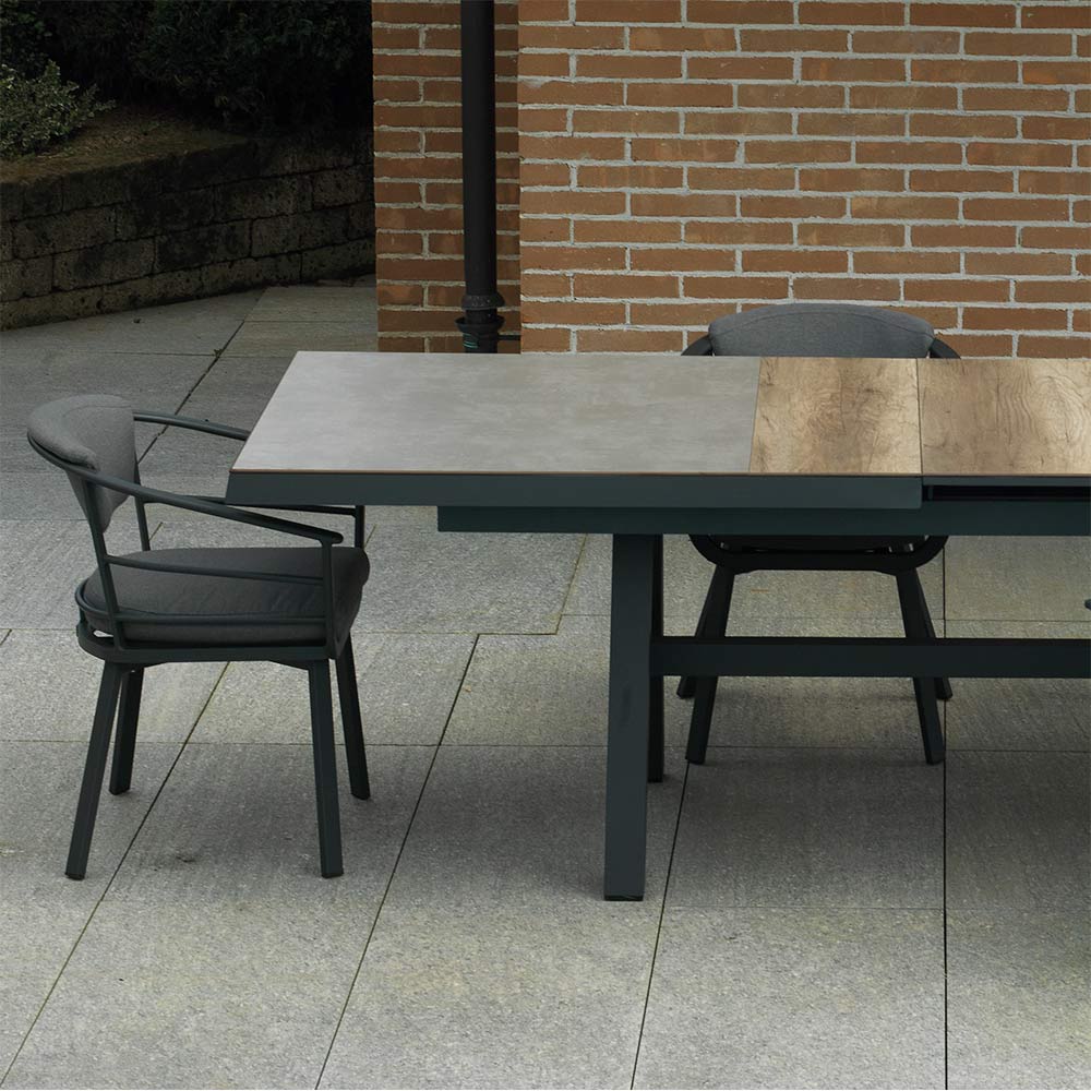 Det automatiske centrale udtræk gør dette bord ekstremt praktisk, så du nemt kan tilpasse det til antallet af gæster. Denne funktion kombineret med det rene design og den robuste konstruktion gør bordet til et must-have for alle, der nyder at underholde udendørs.