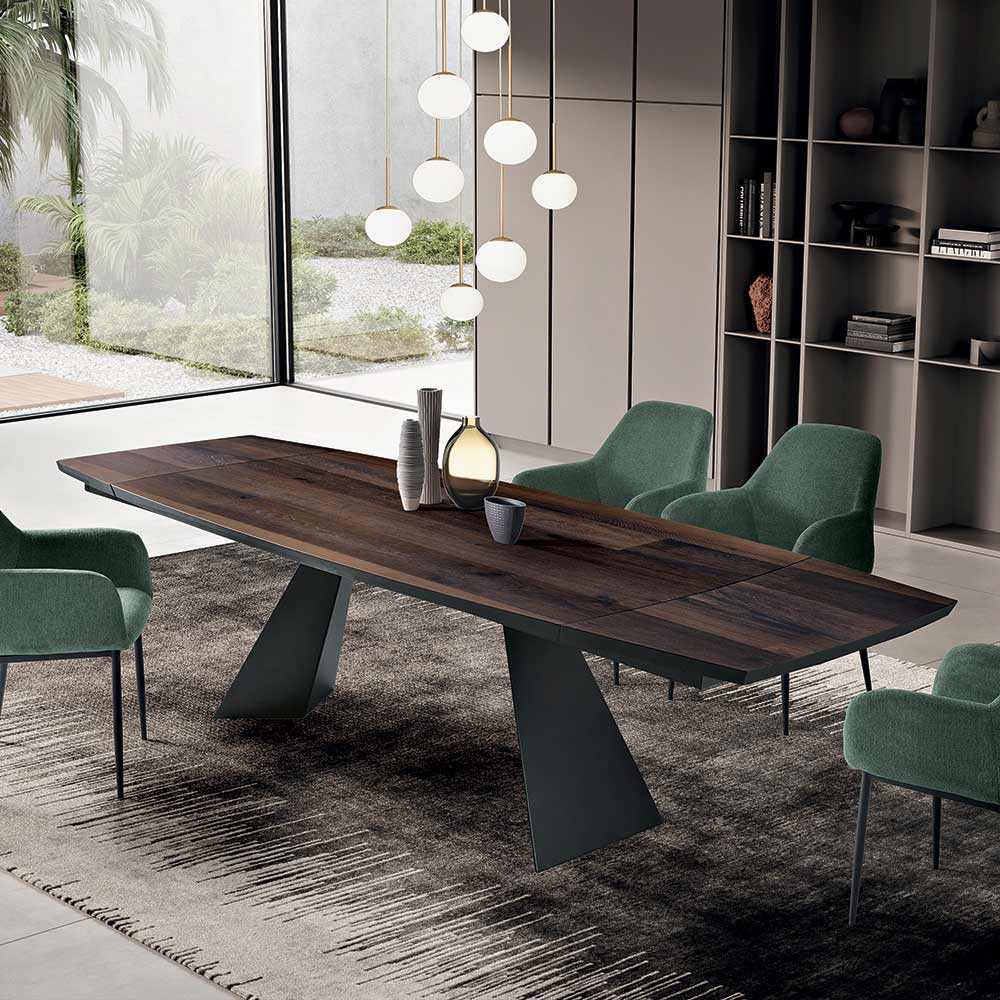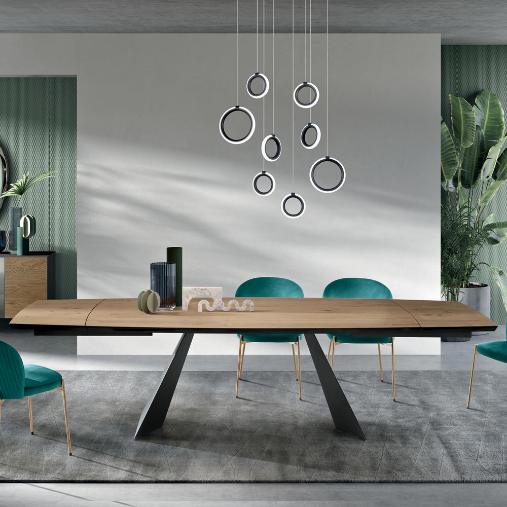 Bordet fås i en udtrækkelig version , der er ideel til at tilpasse sig forskellige daglige behov og til at give plads til gæster i hyggelige stunder. Tillægspladerne er separate og ikke integreret i bordet , og kan indsættes efter behov ved hjælp af de udtrækkelige skinner.