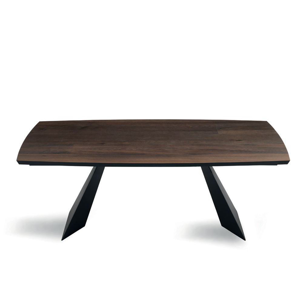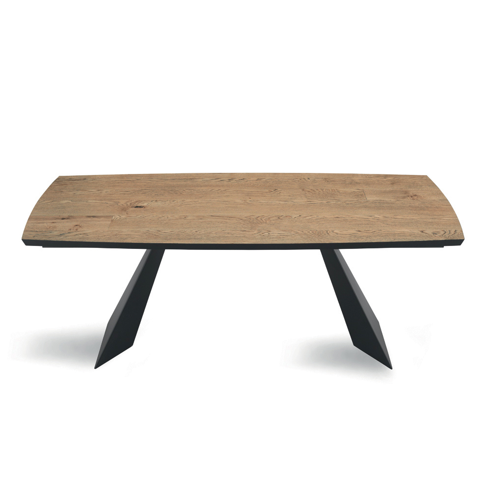 Kombinationen af metal og træ skaber en elegant og moderne kontrast, der gør bordet velegnet til en række forskellige indretningsstile. Bordpladen fås i rå eg og termisk eg , der er designet til at fremhæve træets naturlige skønhed og nemt integreres i moderne miljøer.