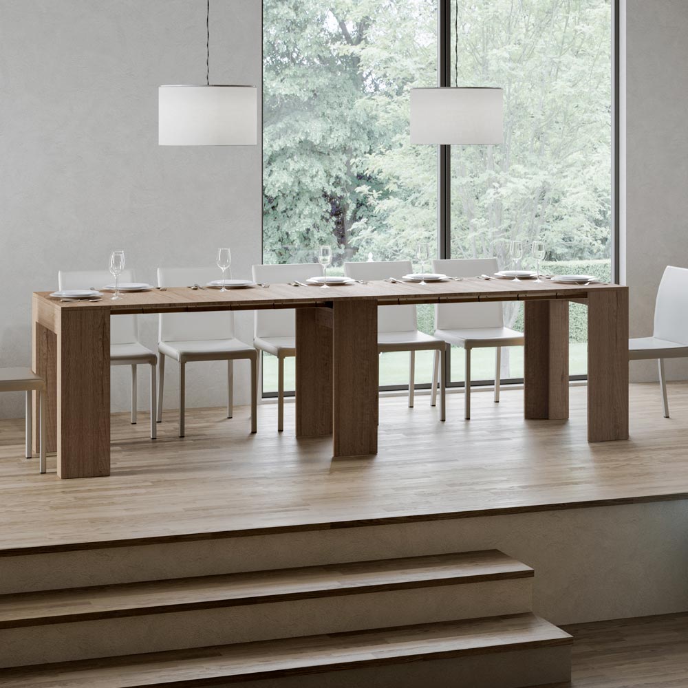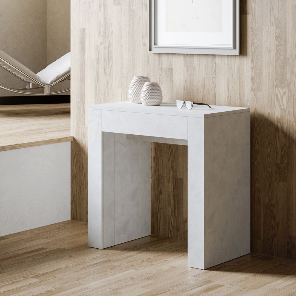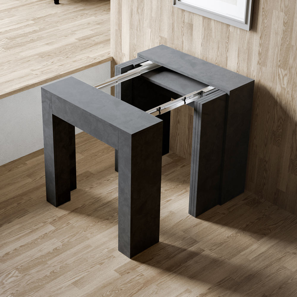Udtræksmekanismen er et eksempel på rumlig intelligens: Konsolbordet kan nemt omdannes til et større bord, hvilket gør det til en mangesidig løsning til små lejligheder eller rum, der kræver multifunktionelle møbler. È Det er ideelt til dem, der sætter pris på funktionel skønhed og smart design, der sparer plads uden at gå på kompromis med stilen.
