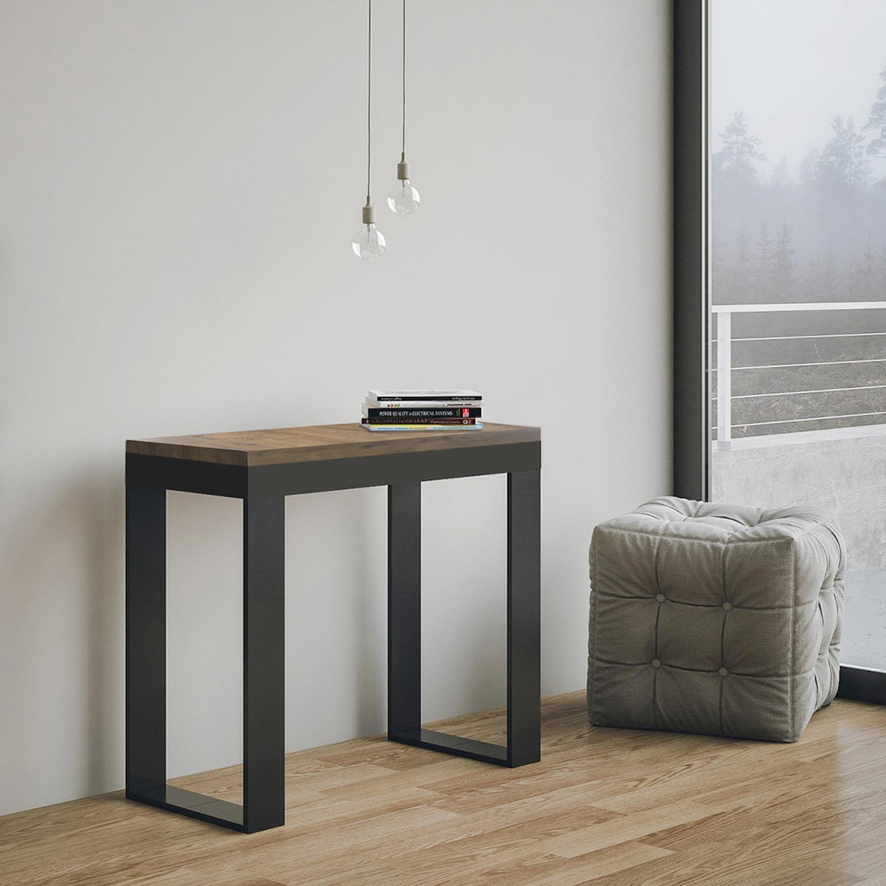 Udtrækkeligt konsolbord af fineret træ og jern, Made in Italy