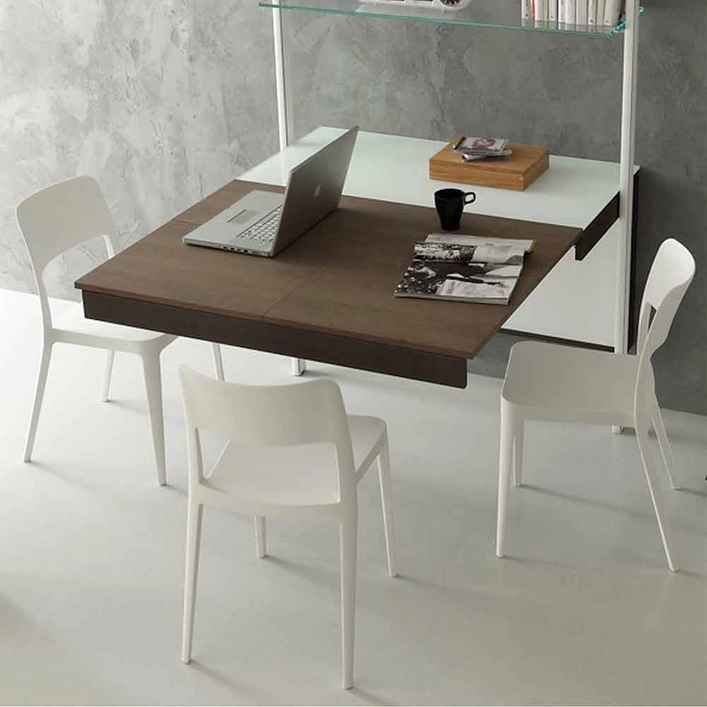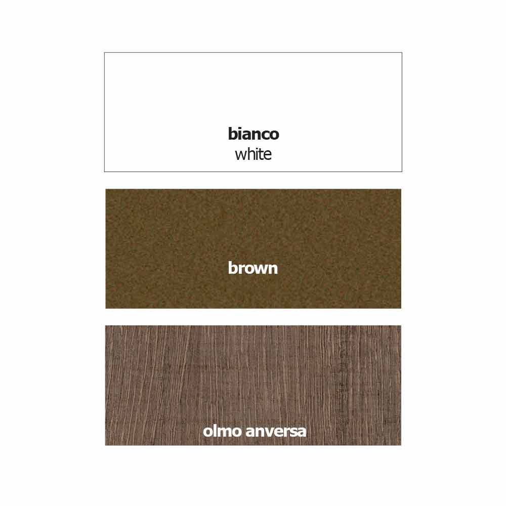 Udvidelig konsol med vægmontering lavet i Italien med blank hvid glasplade udstyret med kabelføringer og 45 cm forlængelse i melamin af alm , struktur i bruntmalet metal og aftageligt lodret panel i hvidt plexiglas