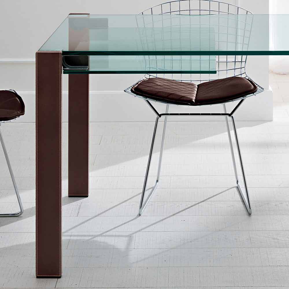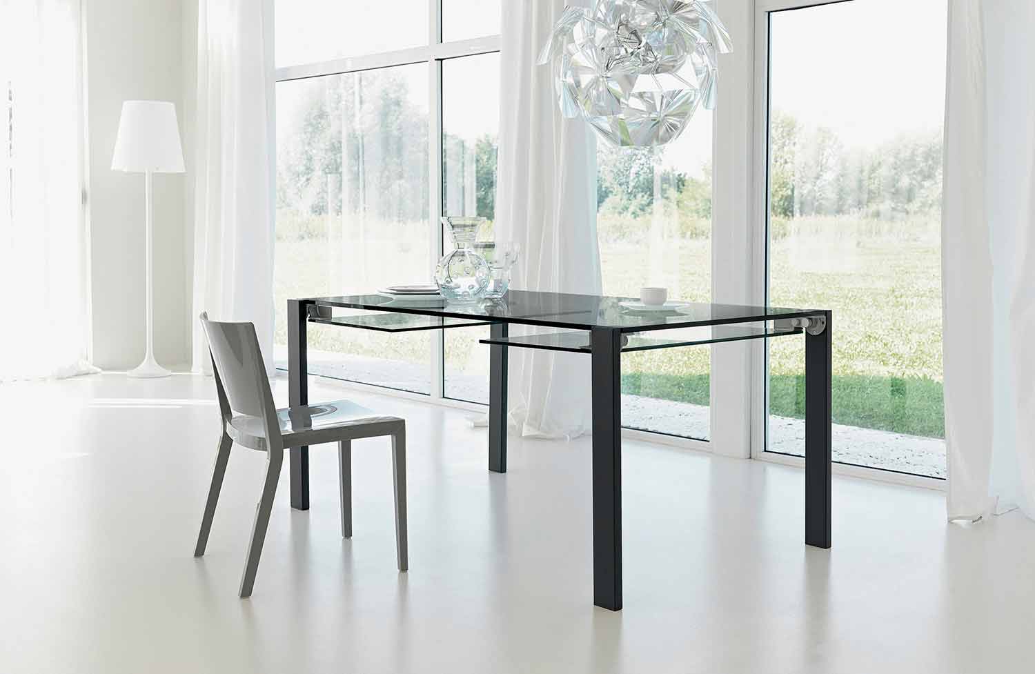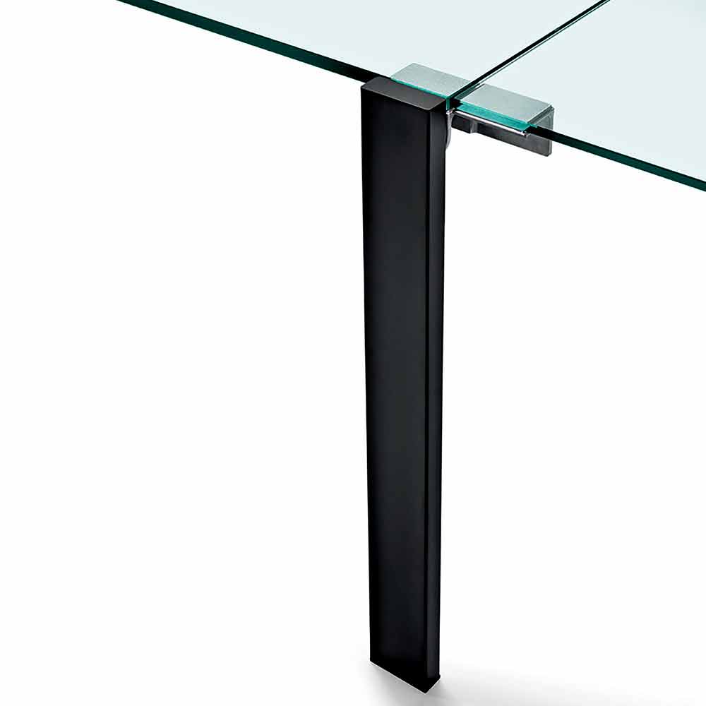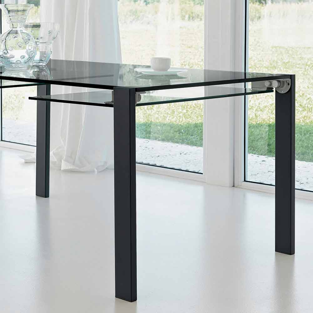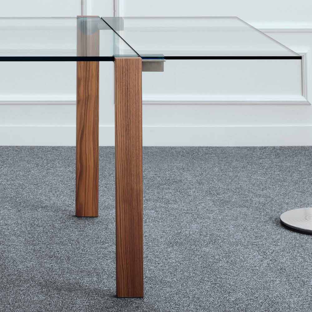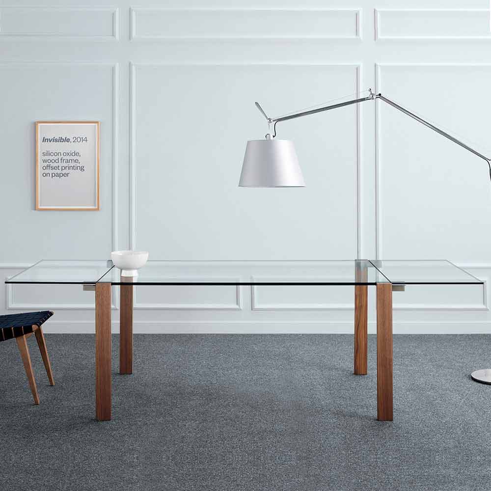 Gennemsigtig glasbord, der kan udvides op til 12 steder med metal- eller canaletto-valnødbase, fremstillet i Italien.