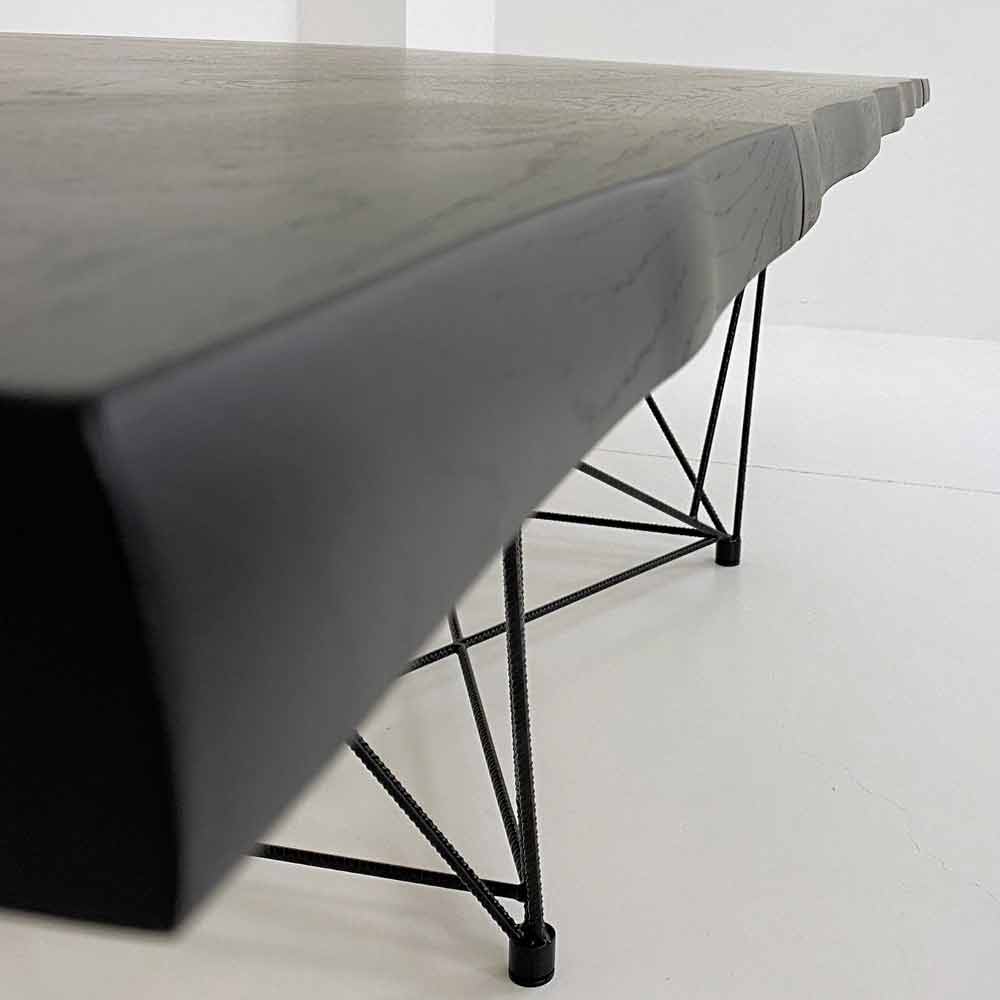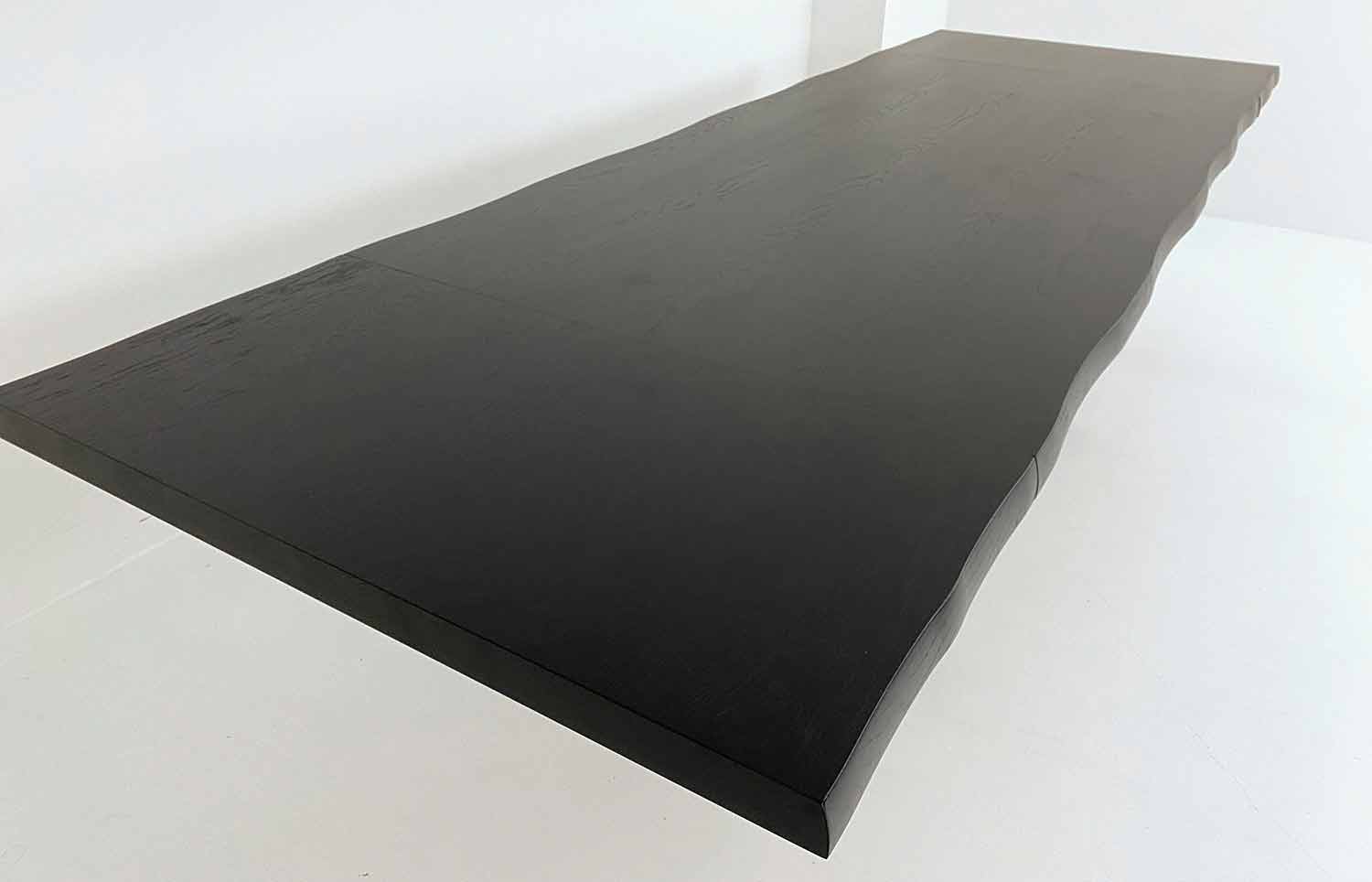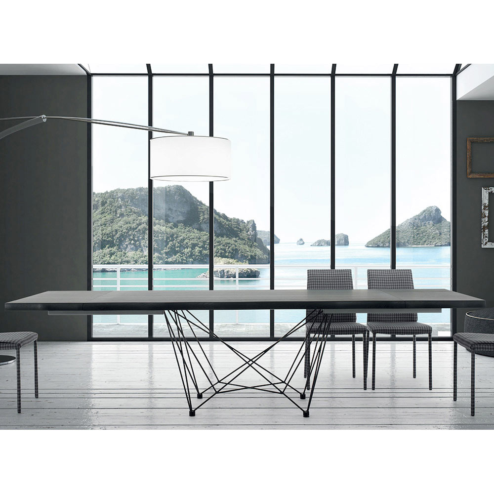 Moderne udtræksbord op til 300 cm med fineret træplade og sort stålbund produceret i Italien.