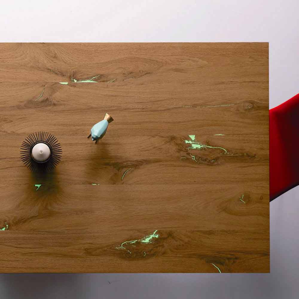 fineret træ, som takket være tilstedeværelsen af 2 aftagelige 47 cm forlængelser, kan nå en længde på 294 cm, så den kan rumme op til 14 personer til frokoster og middage med venner.