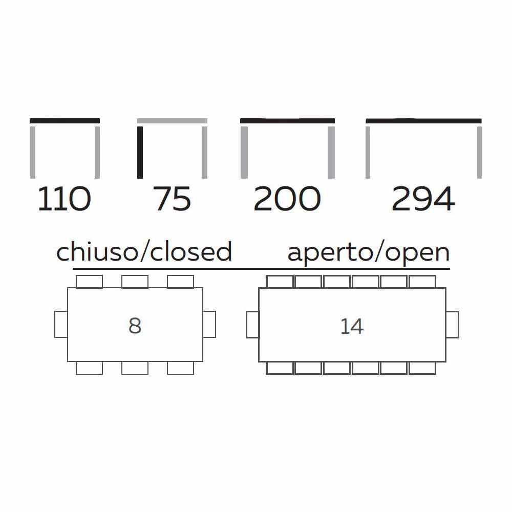 Størrelse : L 200/294 x P 110 x H 75 cm