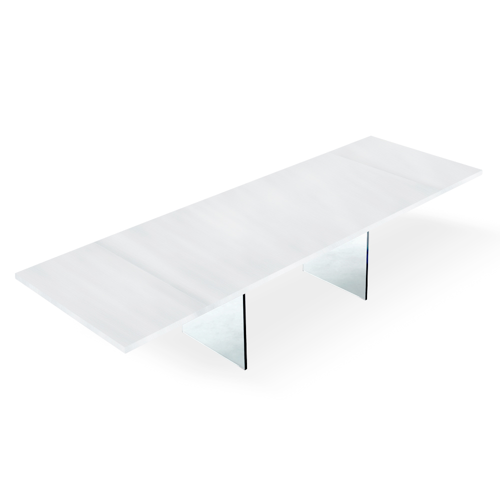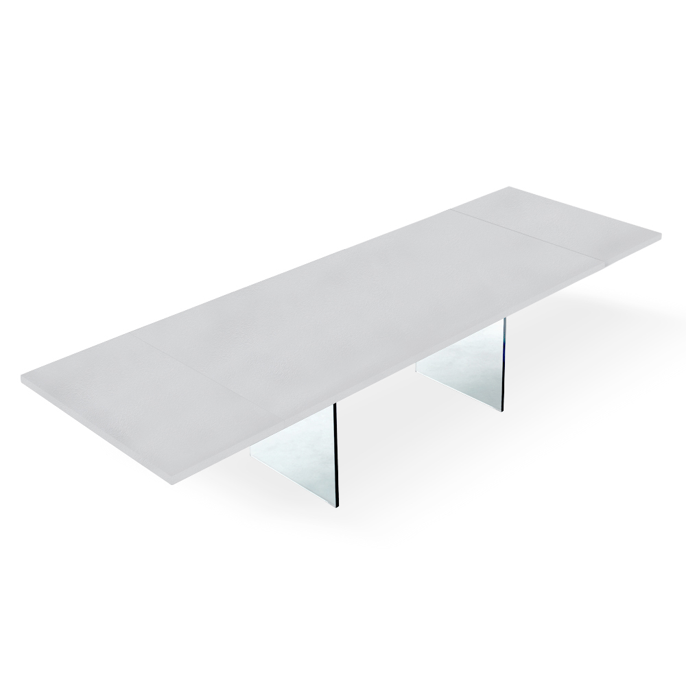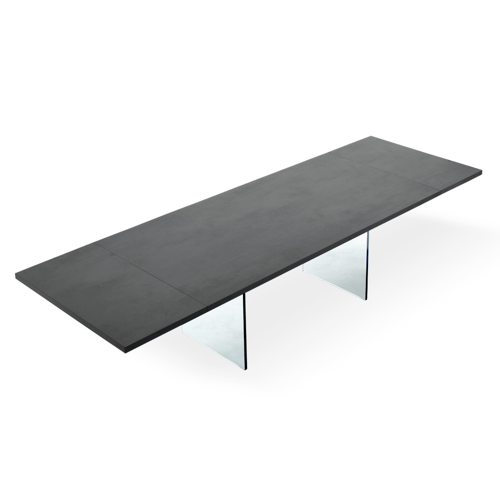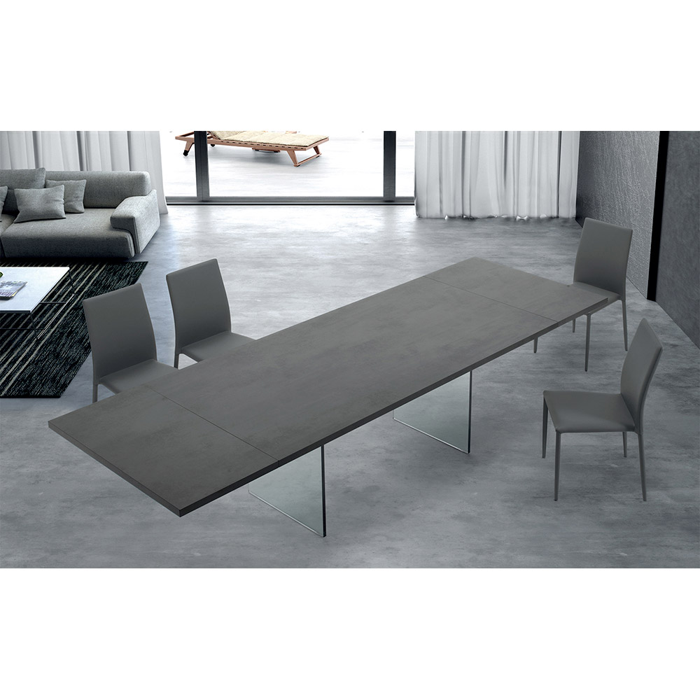 Udtrækkeligt stuebord med lamineret træplade og gennemsigtig glasbund håndlavet i Italien.