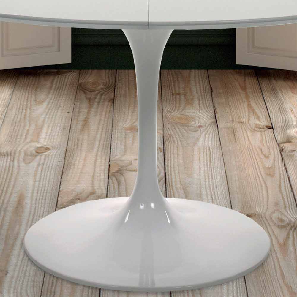Moderne rundt bord, der kan forlænges op til 8 sæder med laminatplade og aluminiumsbund lavet i Italien.