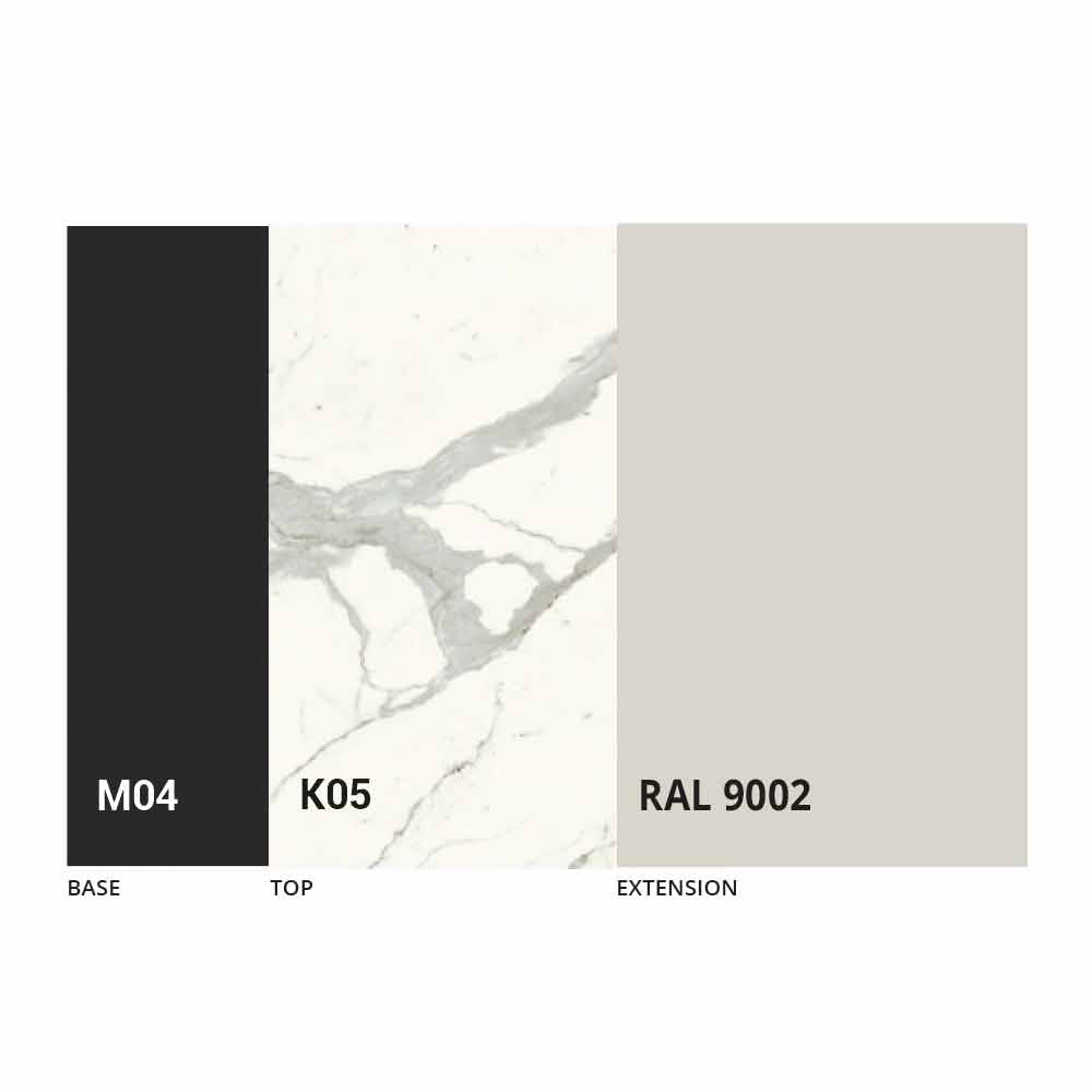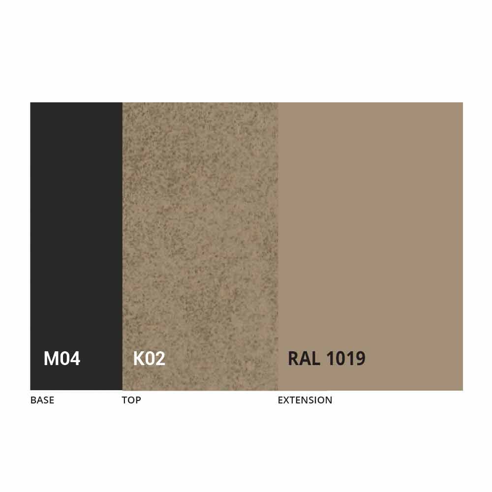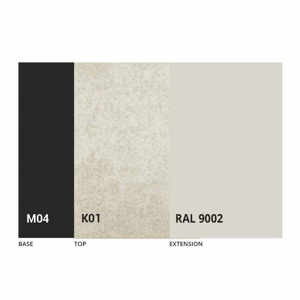 Bordpladen, forlængelsen og bunden af bordet kan tilpasses med forskellige prøvefinisher. For information, kontakt os ved at bruge formularen "