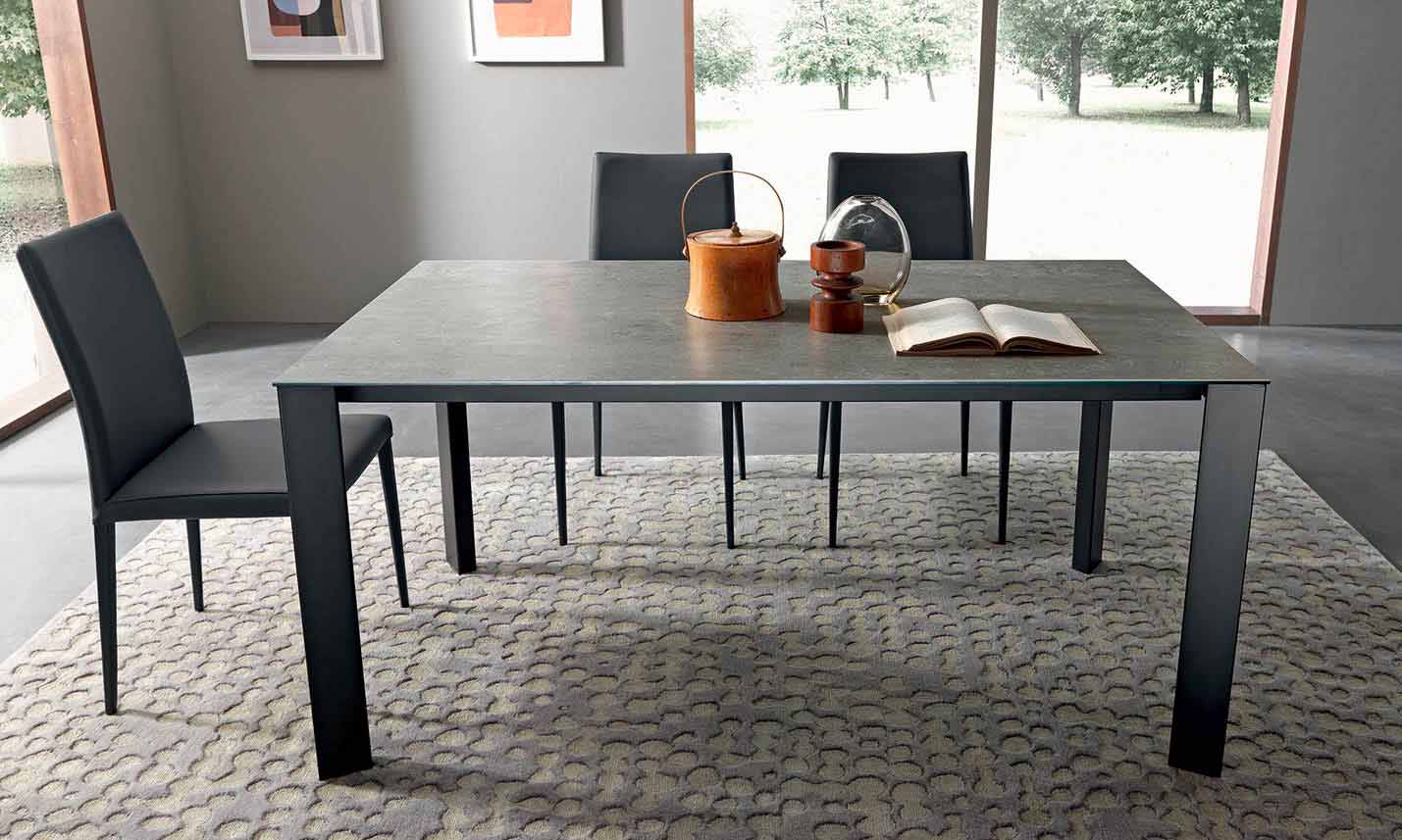 Udtrækbart spisebord op til 310 cm lavet af keramik og metal Made in Italy.
