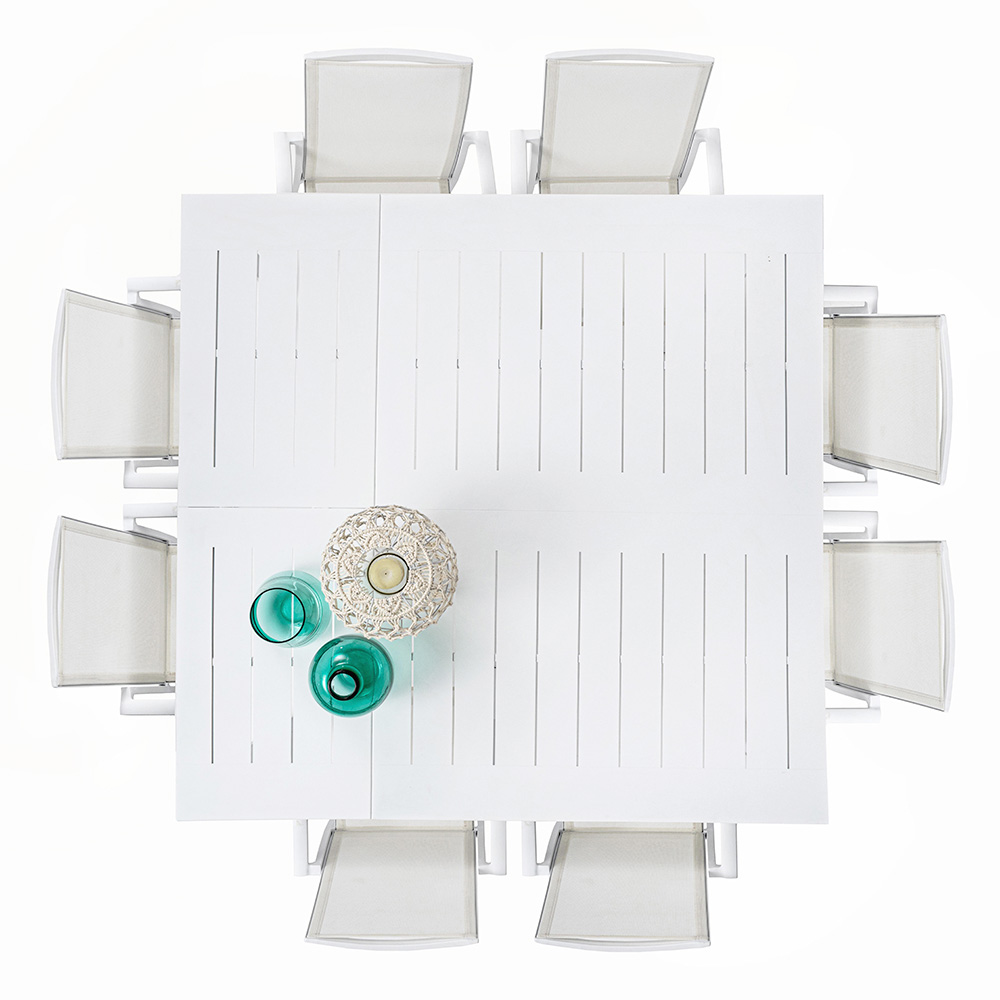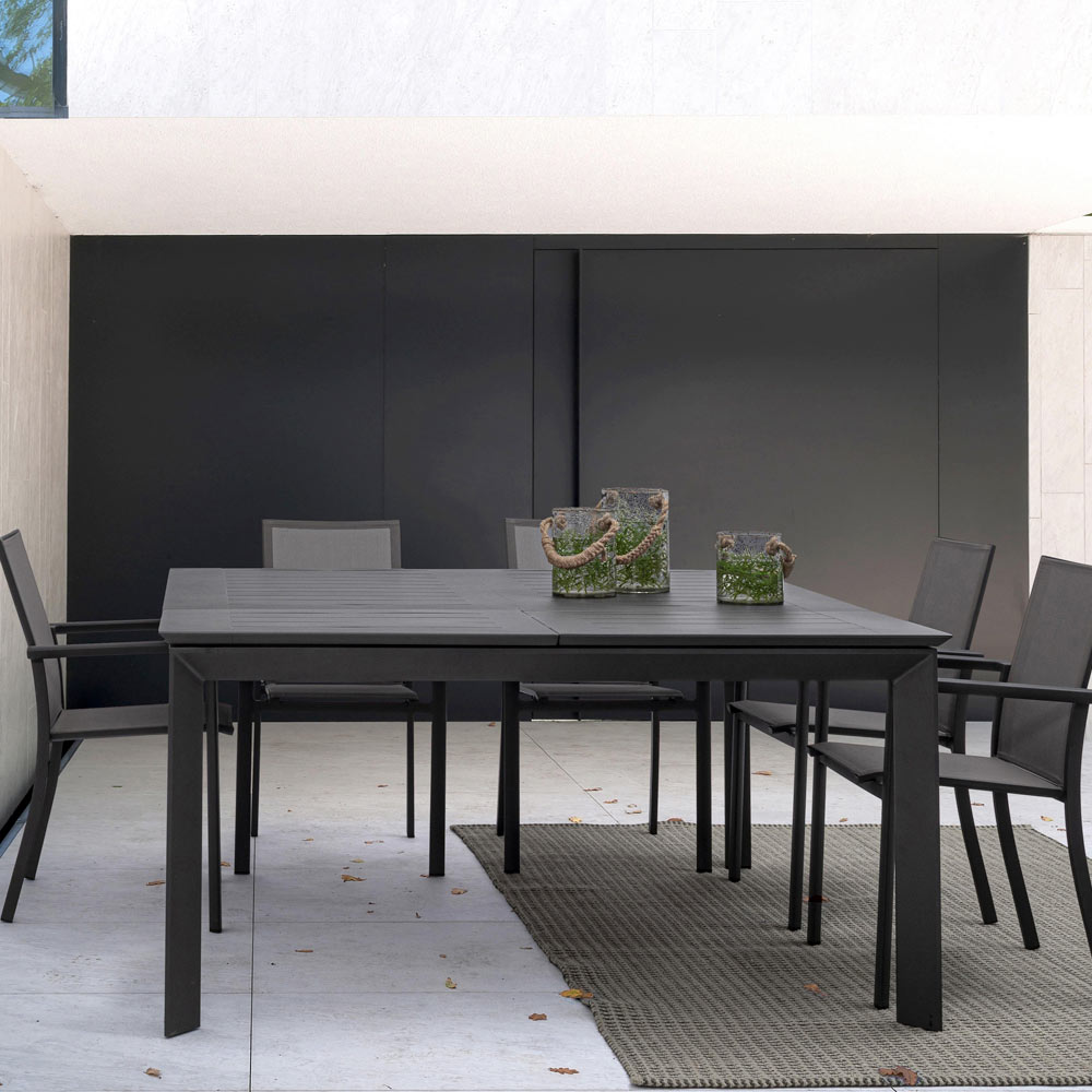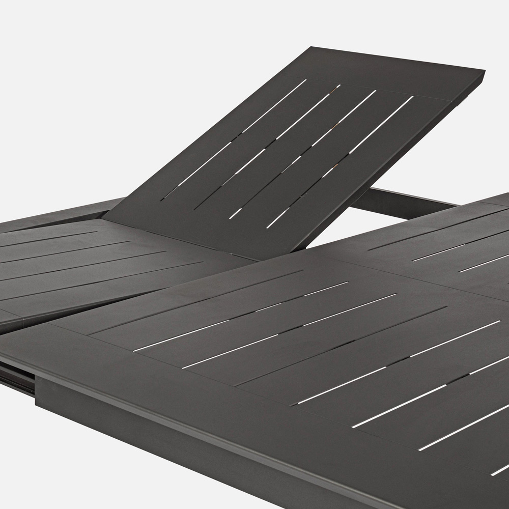 Udtrækkeligt udendørs spisebord i høj kvalitet malet aluminium.