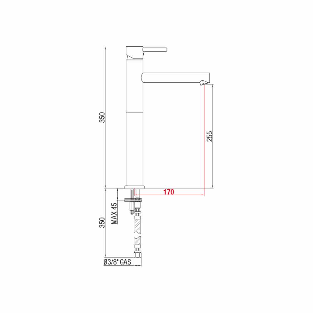 Udvidet mixer uden affald til håndvask i messing Made in Italy.