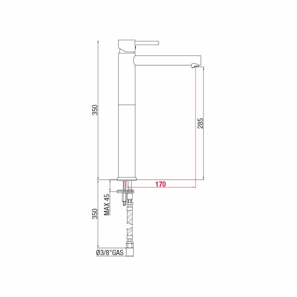 Udvidet mixer til håndvask uden affald i messing Fremstillet i Italien.