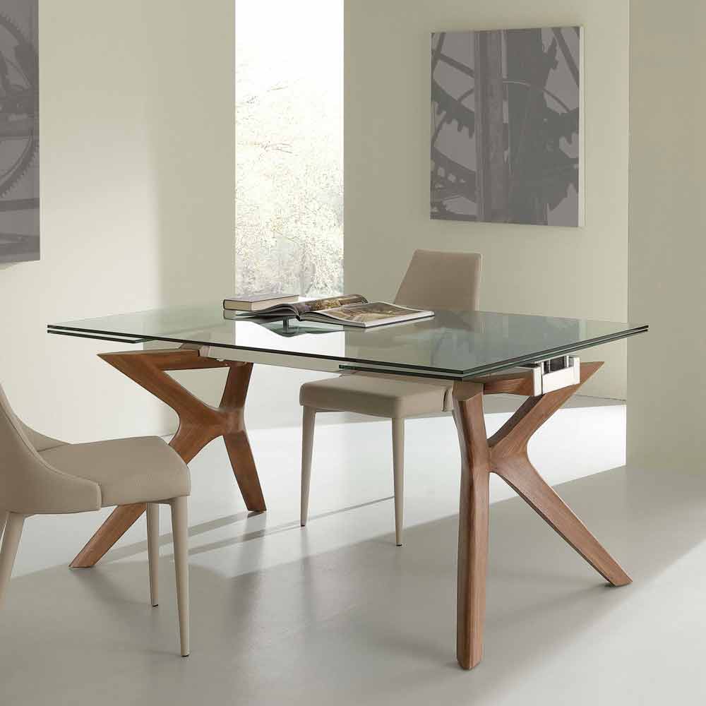 Udvidet spisebord Kentucky, hærdet glas og rustfrit stål, moderne design.